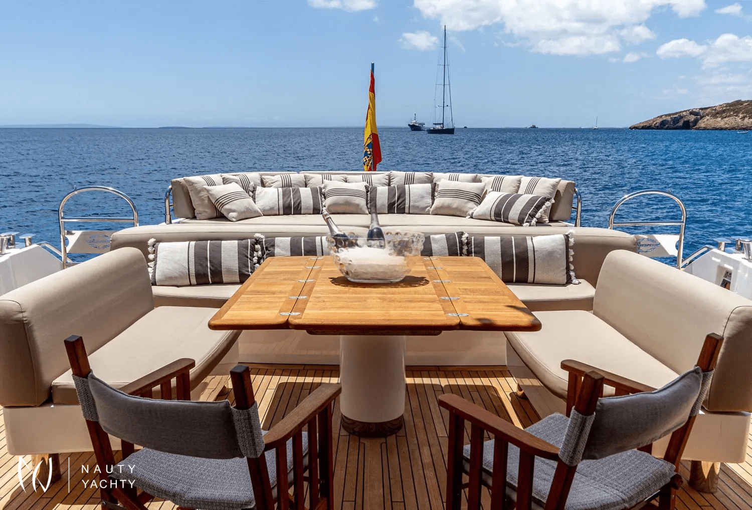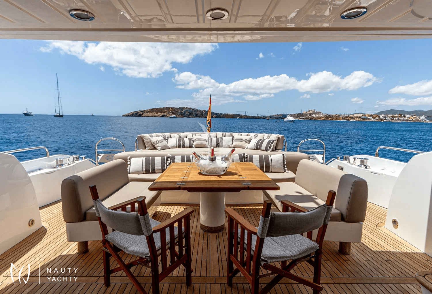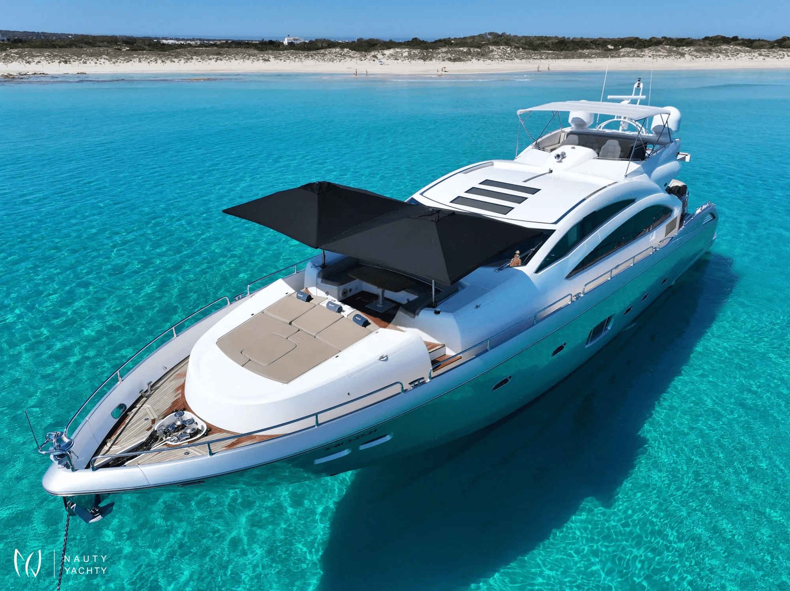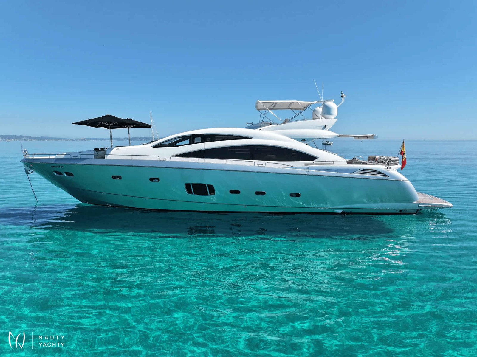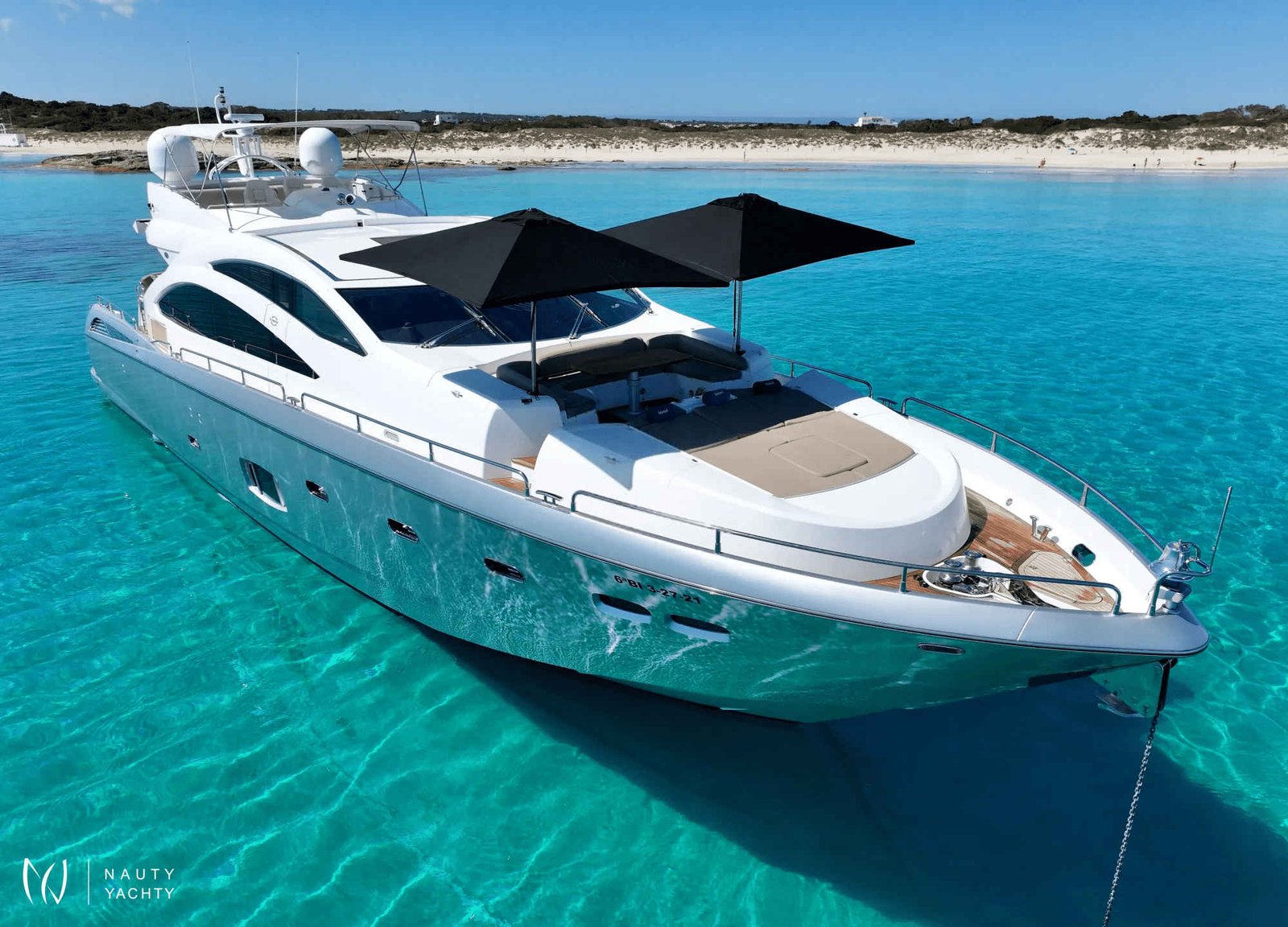 Embrace the magnetic energy of the Balearic Islands aboard BASAD, a spectacular 27-meter Sunseeker motor yacht poised for unforgettable charters from her home port in Ibiza. Fresh from an extensive 2021 refit, she combines thrilling performance with contemporary elegance, offering the ultimate platform for exploring sun-drenched coastlines and hidden coves.