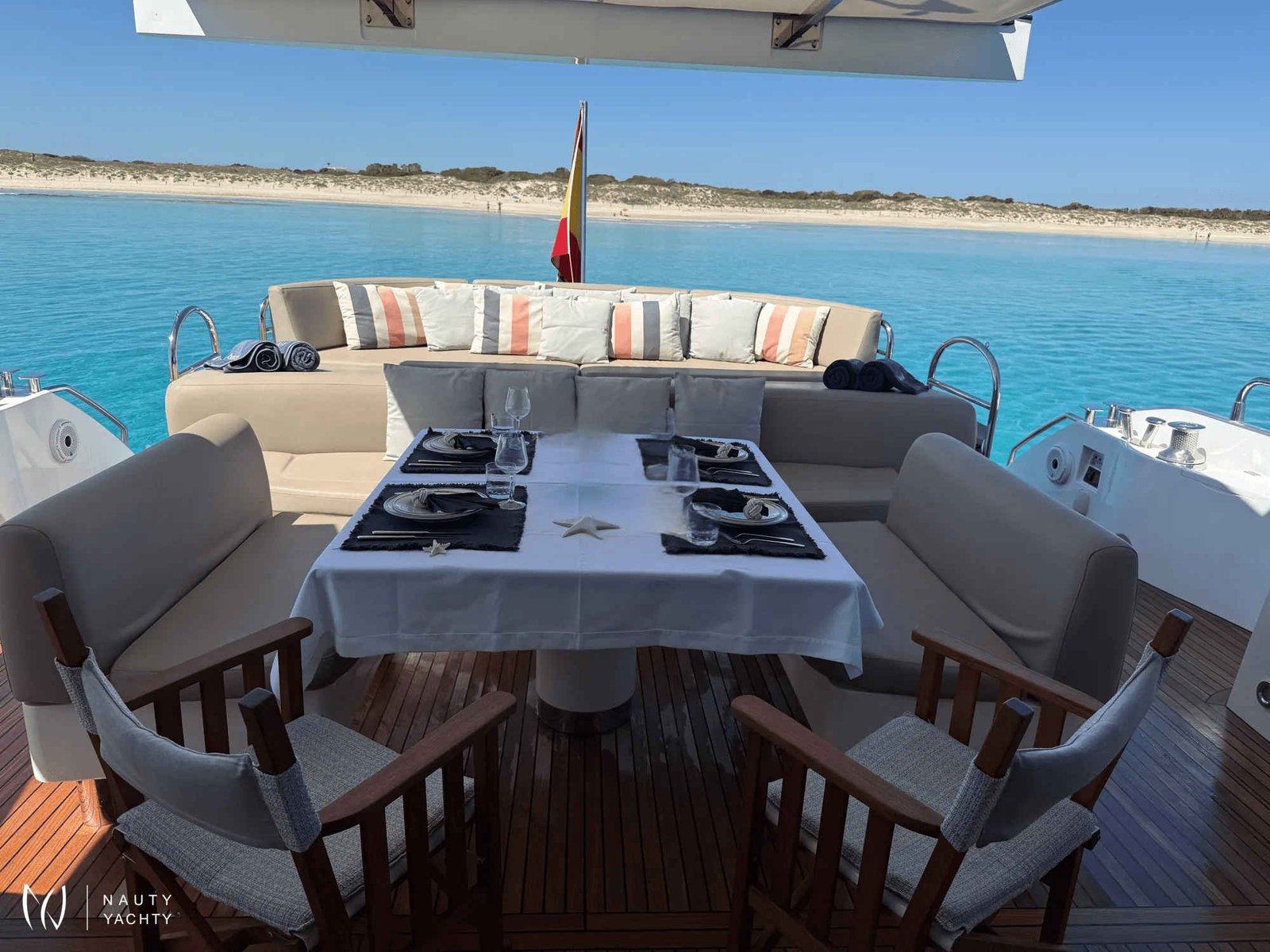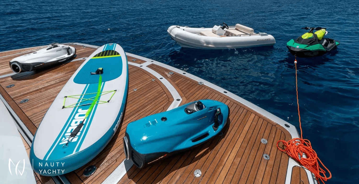 With a cruising speed of 25 knots, BASAD effortlessly glides between Formentera’s crystalline waters and Mallorca’s chic ports. Her spacious decks are perfect for sunbathing, while her stylish interior provides a serene retreat. A dedicated crew of three anticipates your every need, ensuring a seamless and luxurious experience. Onboard BASAD, every moment is curated for pure indulgence.