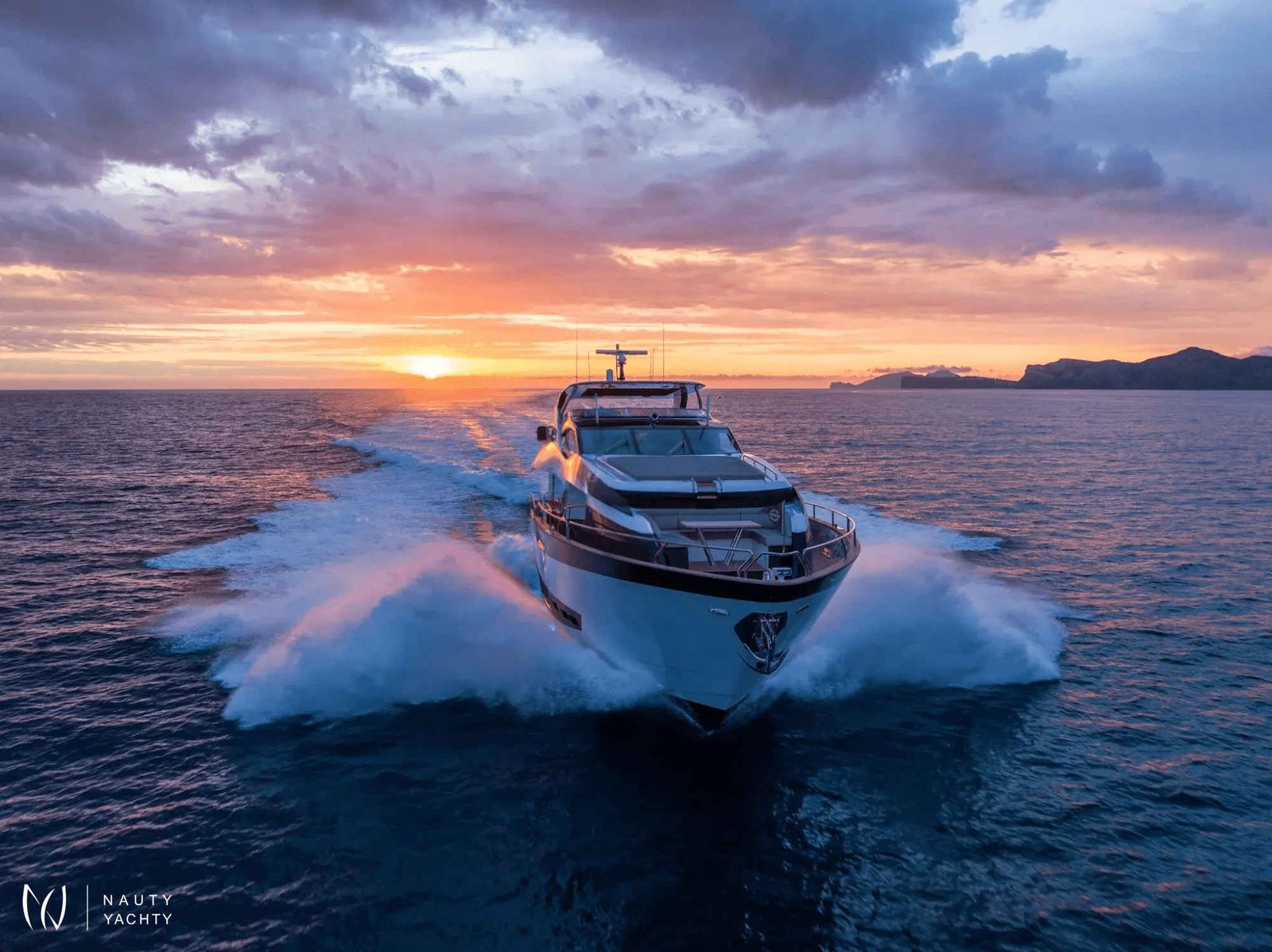 Embark on an unparalleled journey through the sun-drenched Balearic Islands aboard Blue infinity One, a pristine 28-meter Sunseeker launched in 2023. From her home port in the prestigious Puerto Portals, this magnificent vessel offers the ultimate platform for exploring the crystalline waters of Mallorca, Ibiza, and Formentera in sublime comfort and style.