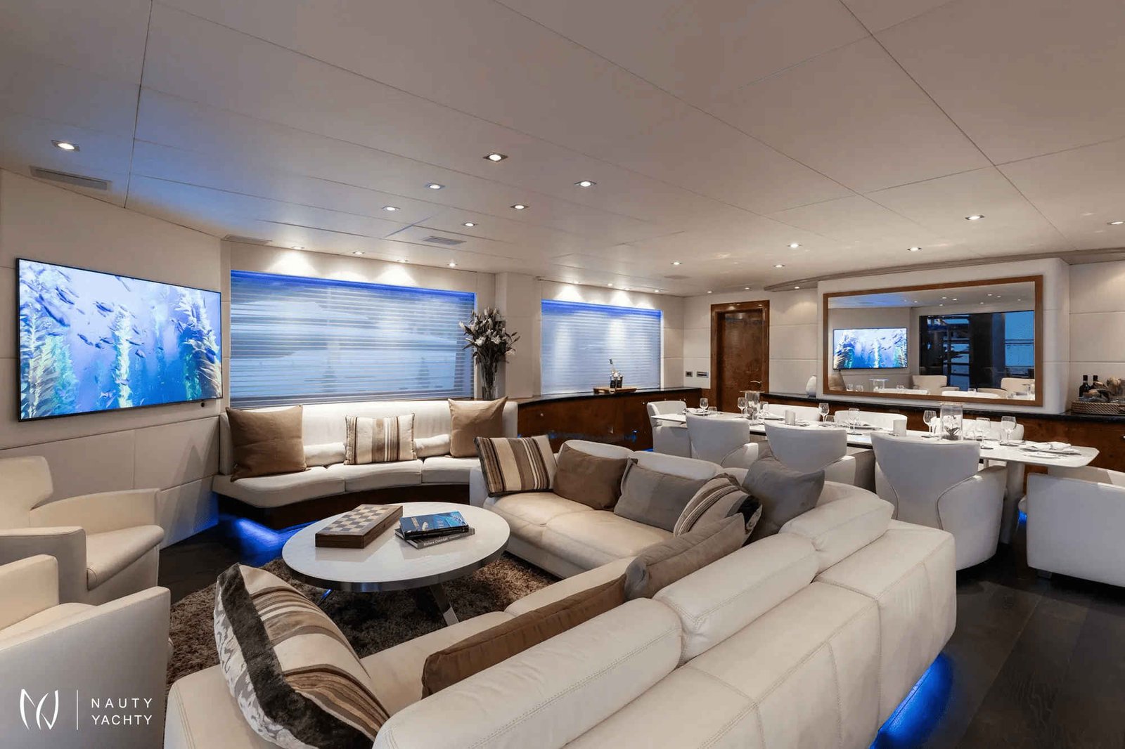 Following an extensive refit in 2020, BROOKLYN presents a fresh and contemporary interior, offering serene spaces for relaxation and entertainment. Her spacious decks are perfect for sunbathing under the Mediterranean sun or enjoying alfresco dining with panoramic sea views, all meticulously prepared by your dedicated crew of six.