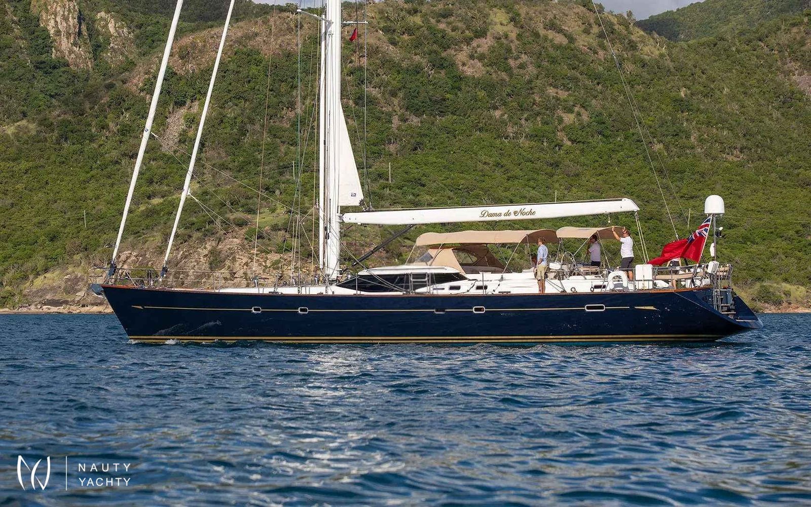 Dama de Noche comfortably accommodates six guests in three beautifully appointed ensuite cabins. The full-beam master stateroom is a private haven with its own direct access to the aft deck. Outside, her expansive decks and spacious guest cockpit with twin tables provide the perfect setting for epicurean dining under the stars or simply relaxing as you glide across the azure waters. With a professional crew of three ensuring flawless service, a charter on Dama de Noche is more than a holiday—it's a collection of unforgettable moments.
