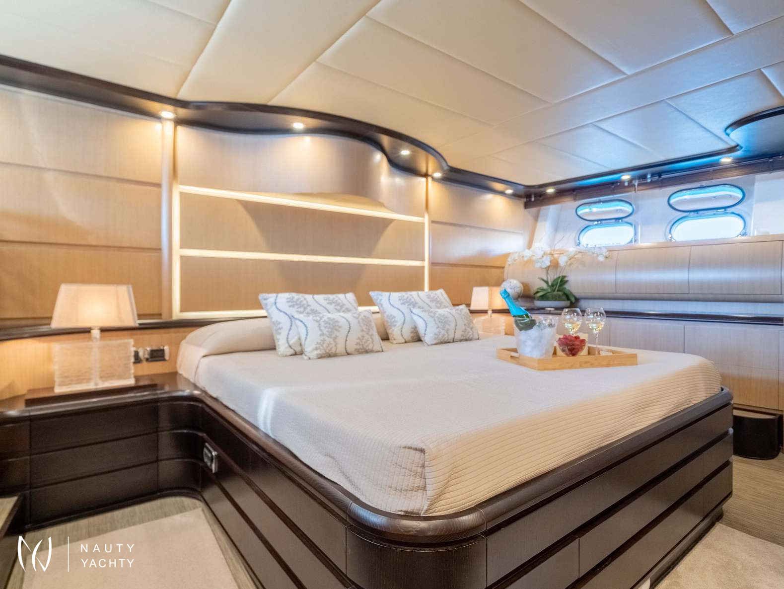 Her interiors are a sanctuary of refined elegance, perfect for hosting up to 12 guests. The versatile five-cabin layout provides exceptional flexibility for families and groups, while the dedicated crew of five ensures every detail of your voyage is flawlessly managed.