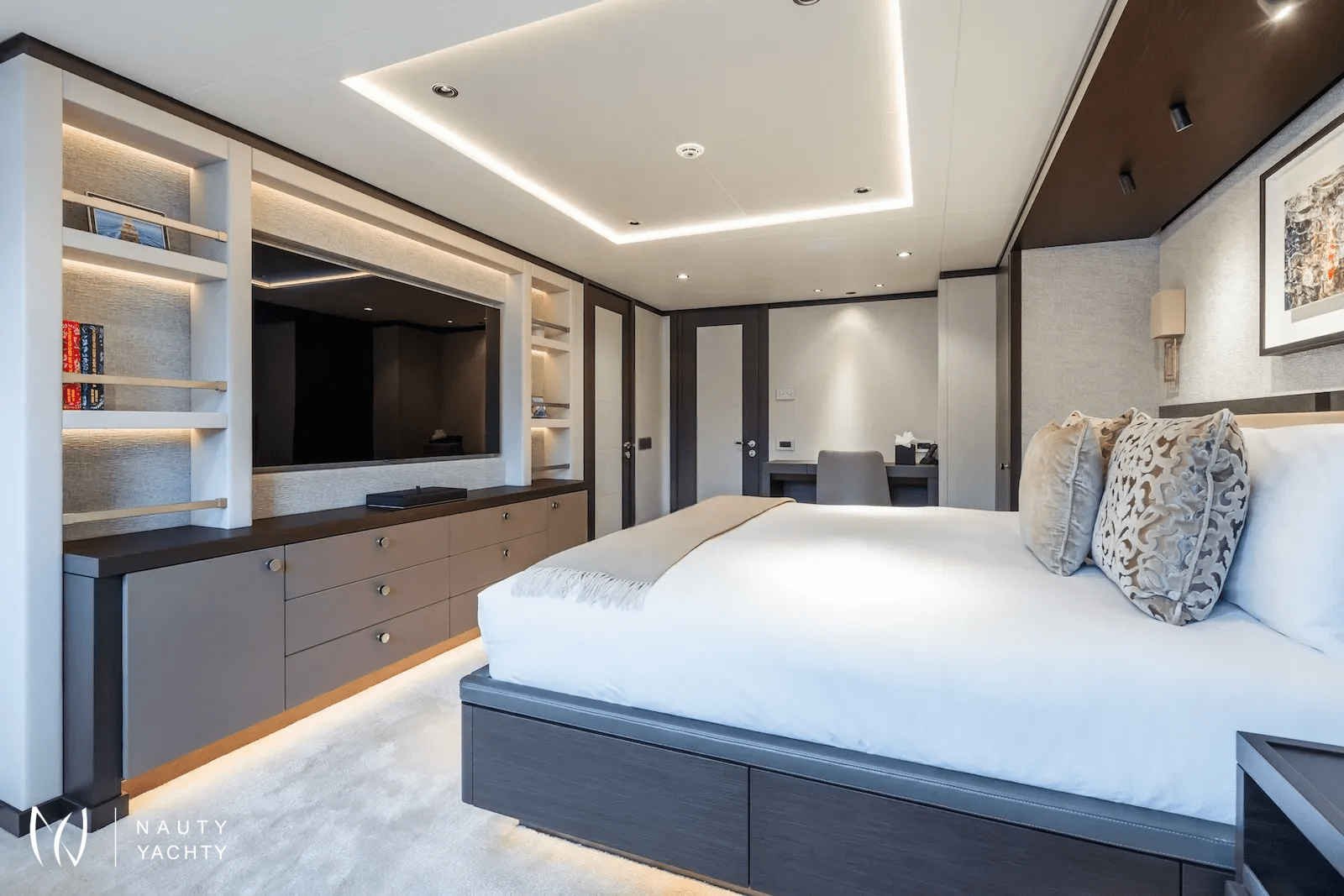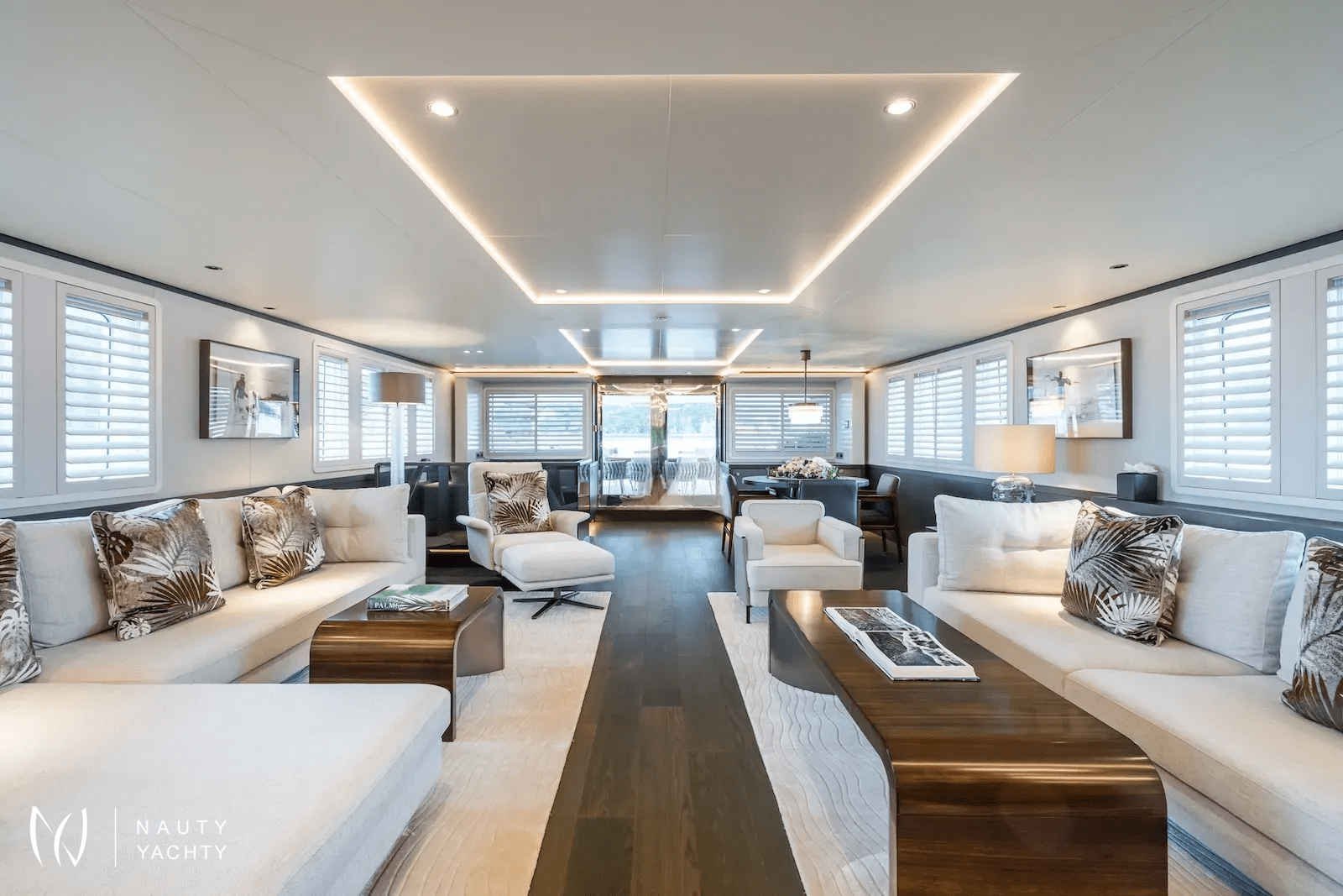 Her completely redesigned interior by Design Unlimited radiates sophisticated elegance, while her extended hull creates one of the most expansive aft decks in her class. Every detail has been renewed to ensure absolute comfort and five-star service, delivered by her professional crew of 11.