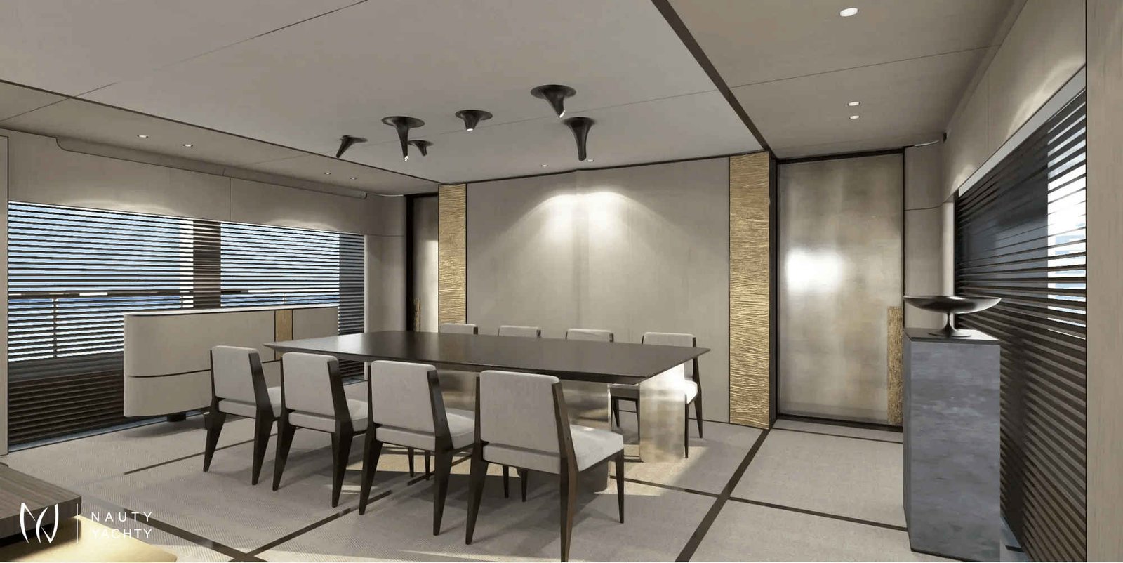Generators: 2 x Caterpillar ACERT C32 952 kW, 3 x Caterpillar ACERT C4.4 80 kW Fuel consumption of generators is 40 l/hour Thrusters: 2 x Rolls Royce US105 P9 CRP 2 x CMC Stabilis Electra Zero Speed Stabilizer Yacht is equipped with a Dynamiq Positioning System keeping always the same position