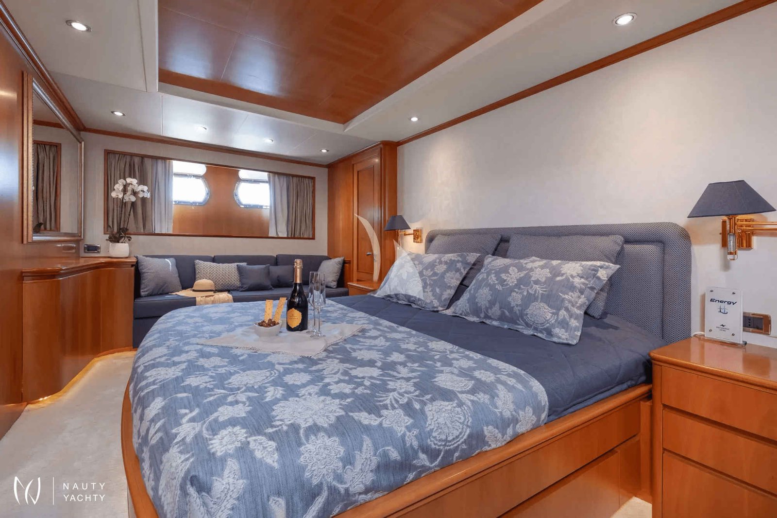 The essence of ENERGY lies in her sophisticated comfort and bespoke service. Her sun-drenched decks invite endless relaxation, while the professional crew of six anticipates your every need, curating a truly seamless and luxurious charter experience. Inside, the elegant interiors offer a tranquil retreat for up to 12 guests.