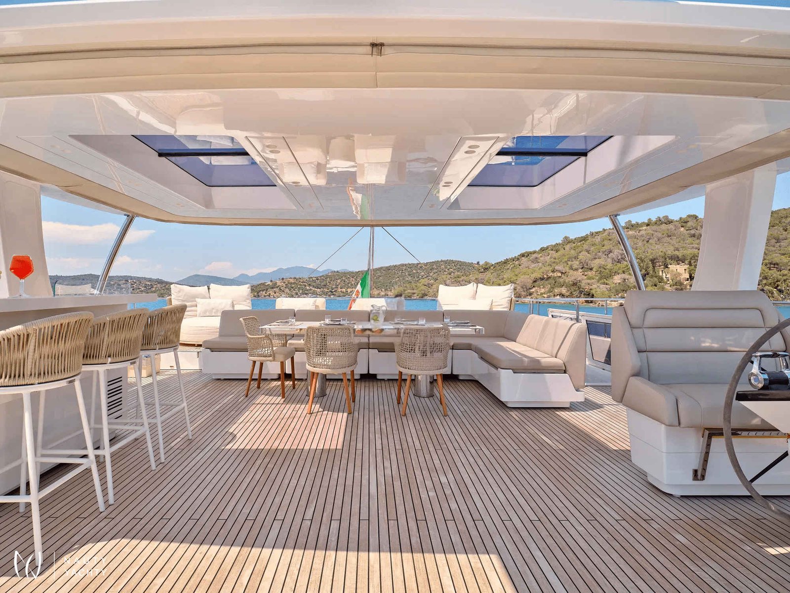 Inside, a serene ambiance awaits, with five stunning queen cabins providing lavish accommodation for up to ten guests. Each suite is a haven of tranquility, ensuring absolute comfort after a day of sun-drenched adventure. Your every desire is anticipated by a dedicated crew of six, including a gourmet chef who will craft a bespoke menu of culinary delights. From sunbathing on the immense flybridge to alfresco dining under the stars, every moment on GENNY is curated for an unforgettable charter experience.