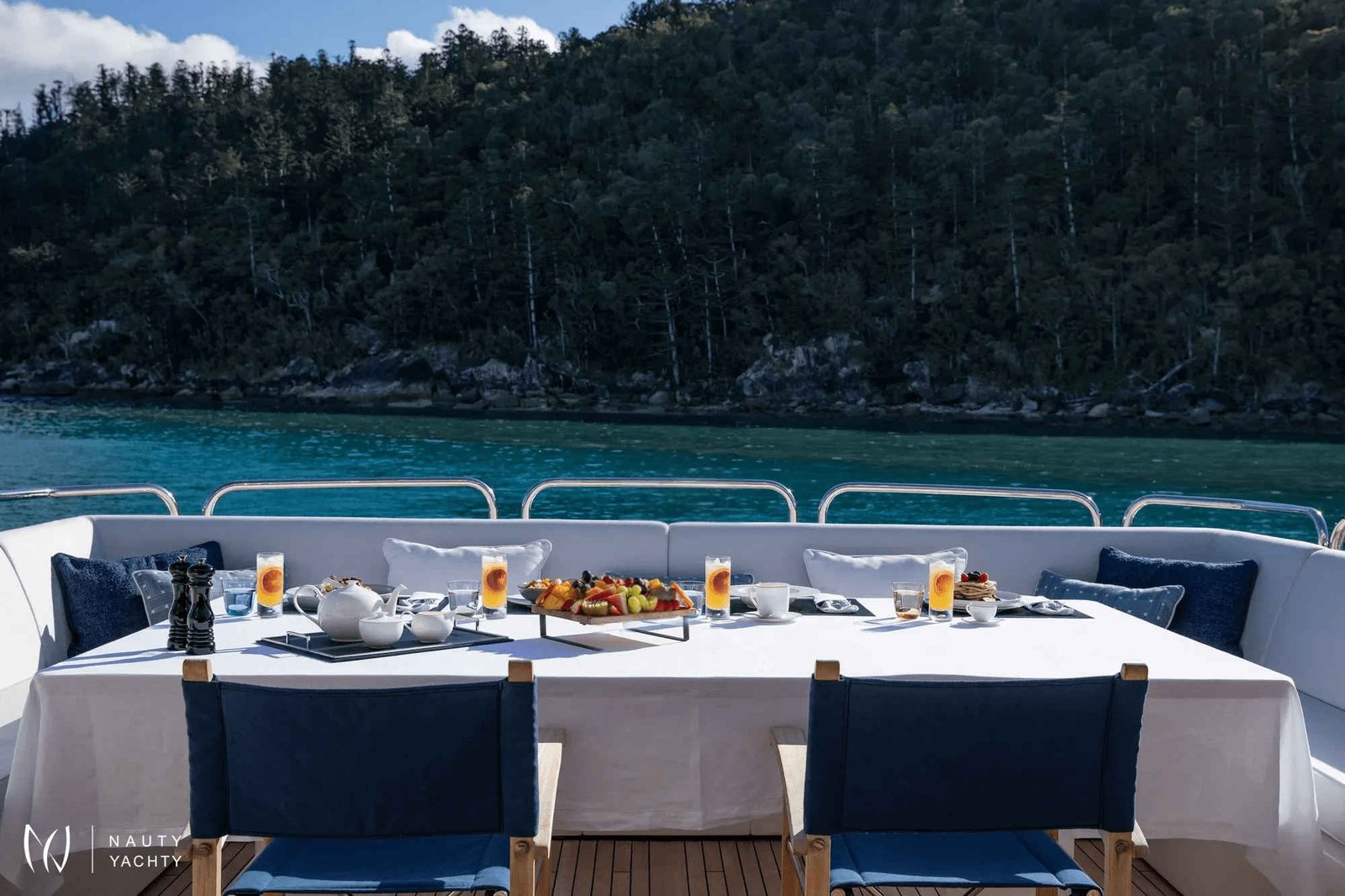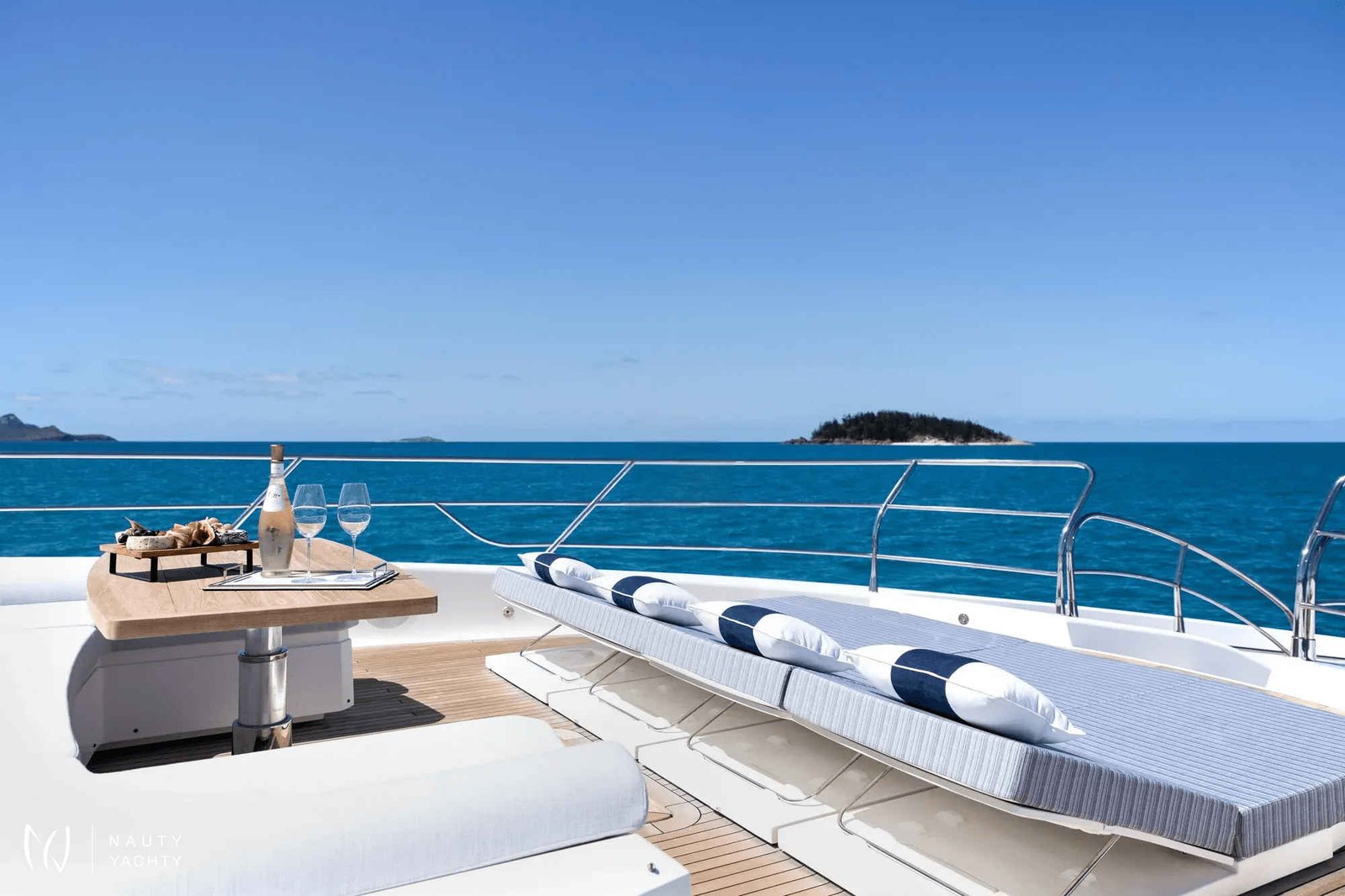 GEORGE P graciously accommodates 12 guests across five versatile staterooms, ensuring absolute comfort for families and groups. Her expansive decks are a haven for sun-drenched relaxation and sophisticated entertainment, curated by a dedicated crew of seven.