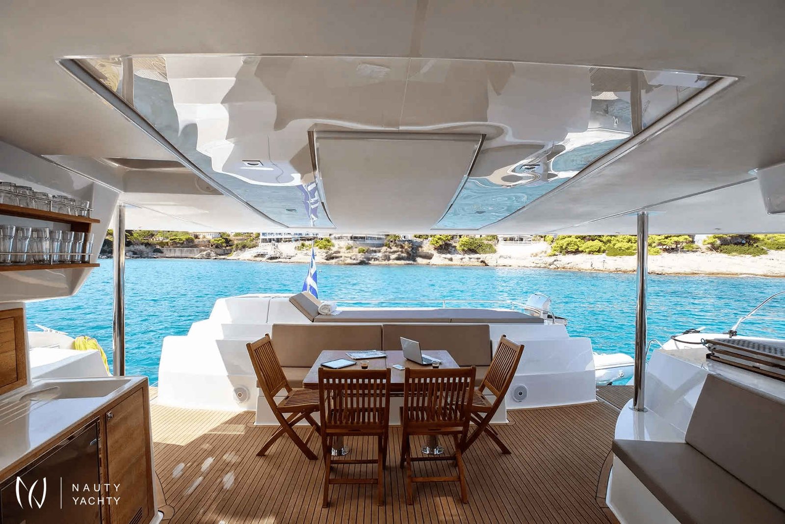 Her sophisticated interiors host eight guests across four elegant double cabins, including a palatial master suite complete with its own private lounge. The expansive decks invite blissful relaxation, from the sun-drenched foredeck trampolines to the shaded aft cockpit, perfect for alfresco dining. Ascend to the flybridge for cocktails with a panoramic view as your crew crafts a bespoke itinerary tailored to your dreams of Hellenic adventure.