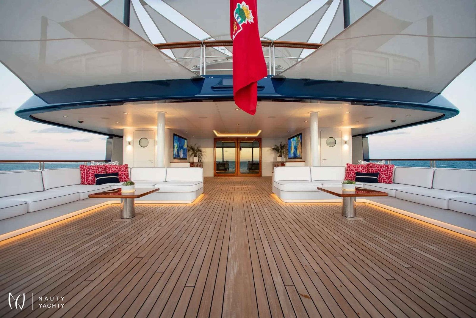 Designed for sublime comfort, HUNTRESS accommodates 12 guests in six expansive staterooms, each appointed with a king-sized bed and lavish en-suite facilities. Two of these cabins can be converted into a twin layout, offering superb versatility. Her exterior decks are a masterclass in alfresco living, with the Owner's Deck providing a spectacular yet sheltered setting for dining. A dedicated crew of 22 anticipates every desire, ensuring a flawless charter experience.