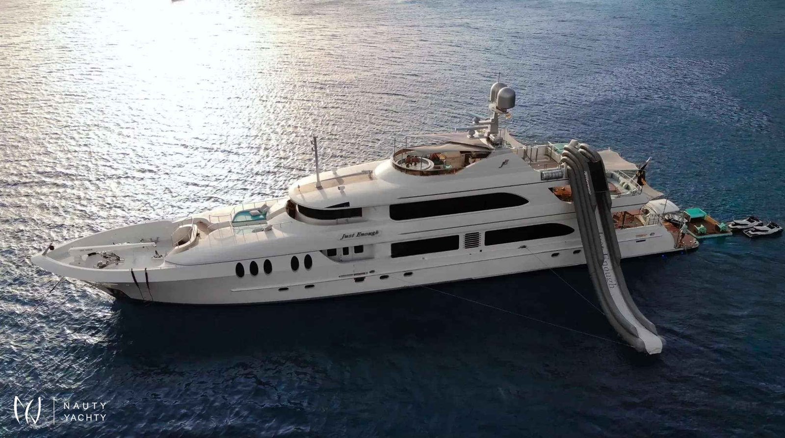 Her interiors feature an open-plan salon and formal dining area, perfect for entertaining, while the sky lounge offers a full bar and state-of-the-art media center. Outside, guests can bask on the sundeck with its Jacuzzi and loungers, enjoy alfresco dining, or retreat to the private foredeck sunbeds. Accommodating 12 guests, a charter on Just Enough is more than a vacation; it's the creation of lifelong memories.
