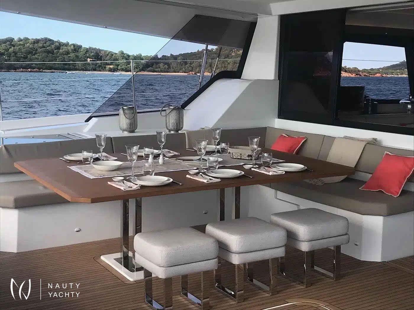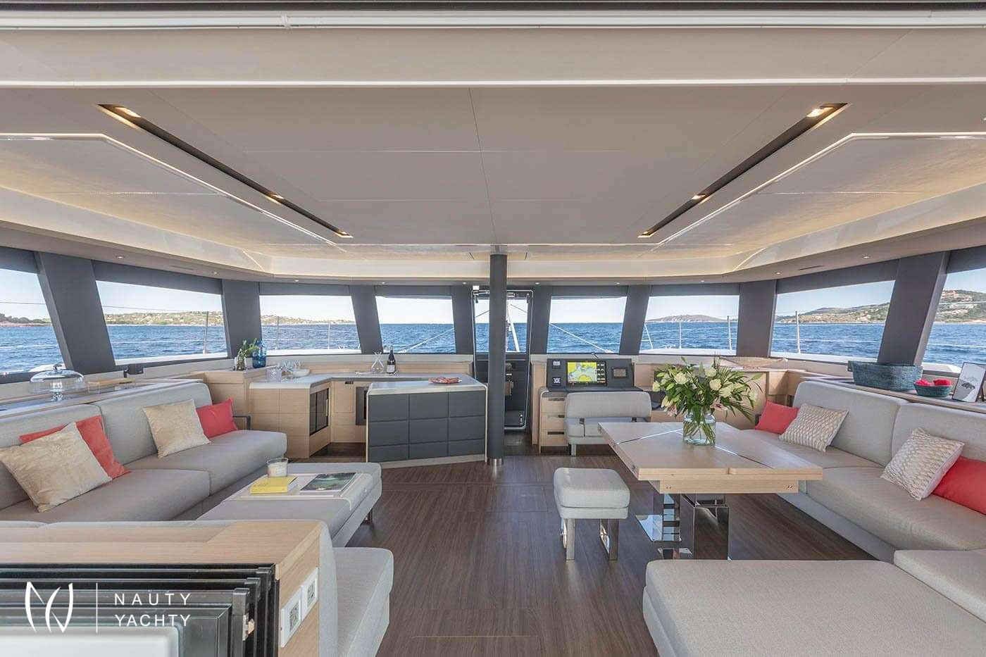 Step inside to a world of contemporary elegance. The yacht’s interior is both modern and incredibly spacious, accommodating eight guests in four beautifully appointed queen cabins, including a lavish owner's suite. Each stateroom features a private ensuite, ensuring complete comfort. Her dedicated, award-winning crew of three is committed to crafting a bespoke charter experience, anticipating your every desire.