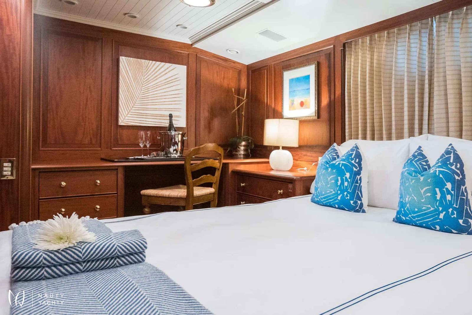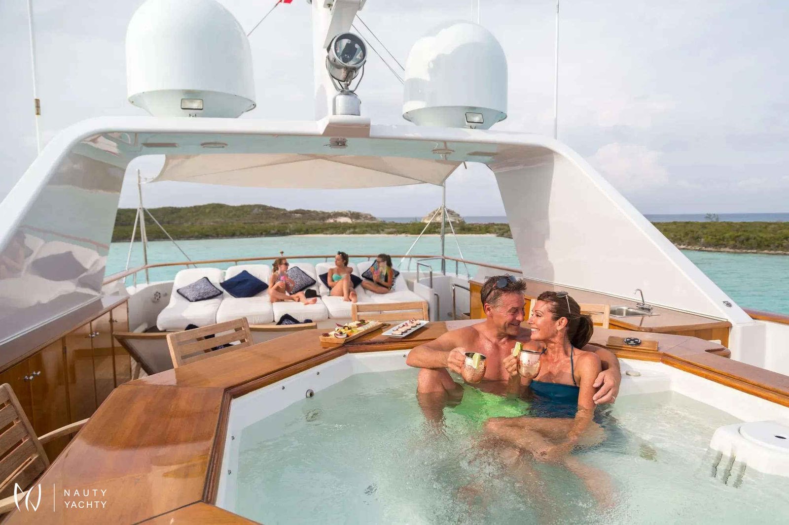 Her sophisticated interior welcomes up to 12 guests, offering unparalleled comfort in five exquisite staterooms. The highlight is a stunning on-deck master suite, providing ultimate privacy and panoramic views. Two versatile cabins easily convert to suit your group, making LADY J ideal for both families and friends. Her expansive decks invite endless relaxation, from gourmet al fresco dining on the bridge deck to sun-drenched afternoons by the sundeck Jacuzzi.