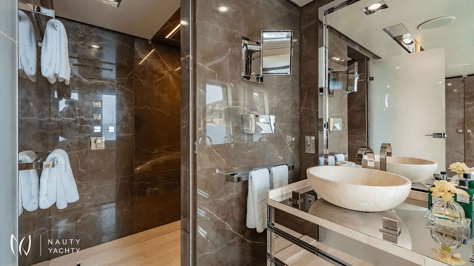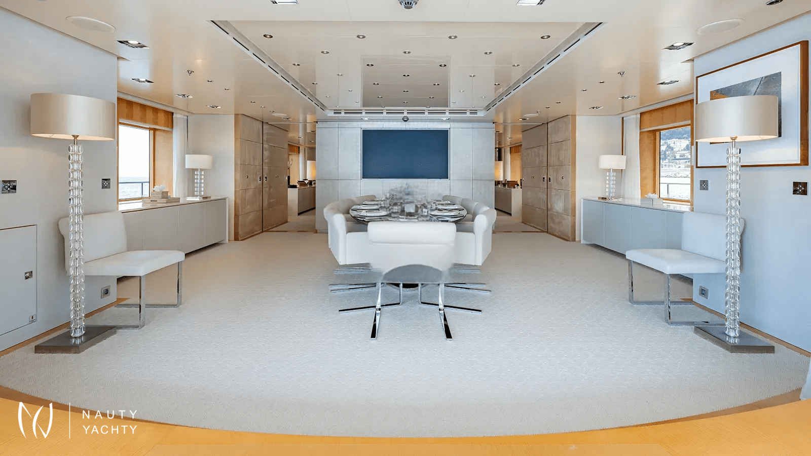 Life aboard LOON is an effortless blend of indoor refinement and outdoor splendour. Her expansive decks invite you to bask in the sun, cool off in the stunning glass-fronted infinity pool, or unwind in the bridge deck jacuzzi. The true jewel is her expansive beach club, a private wellness sanctuary complete with a sauna, gym, and direct sea access. A celebrated crew of 18 stands ready to curate your bespoke journey, ensuring every moment is unforgettable.