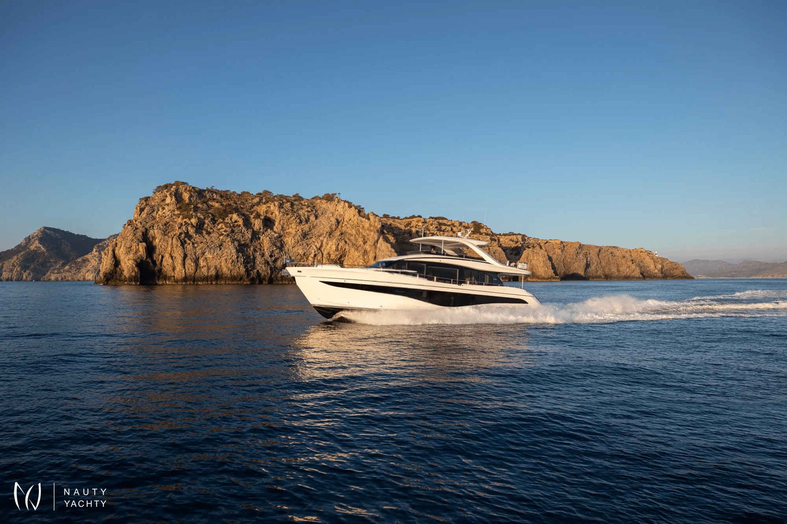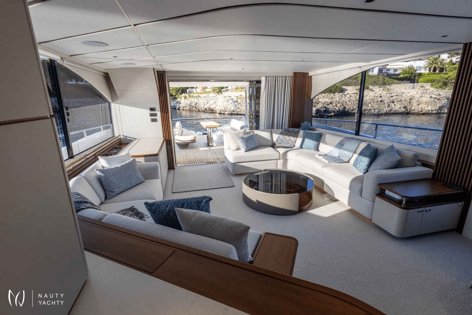 Embark on an unforgettable journey through the Balearic Islands aboard LUMI, a breathtaking Princess yacht launched in 2023. Based in Mallorca, she represents the pinnacle of modern design and exhilarating performance. Her open-plan saloon, framed by panoramic windows, invites the stunning Mediterranean seascape inside, creating a luminous and expansive sanctuary for you and your guests. LUMI is the definitive choice for those seeking a sophisticated and stylish island-hopping adventure.