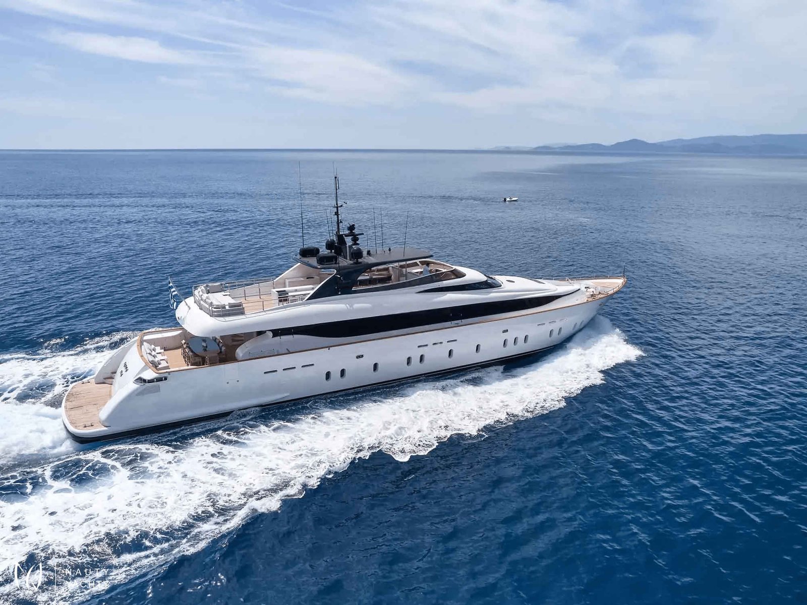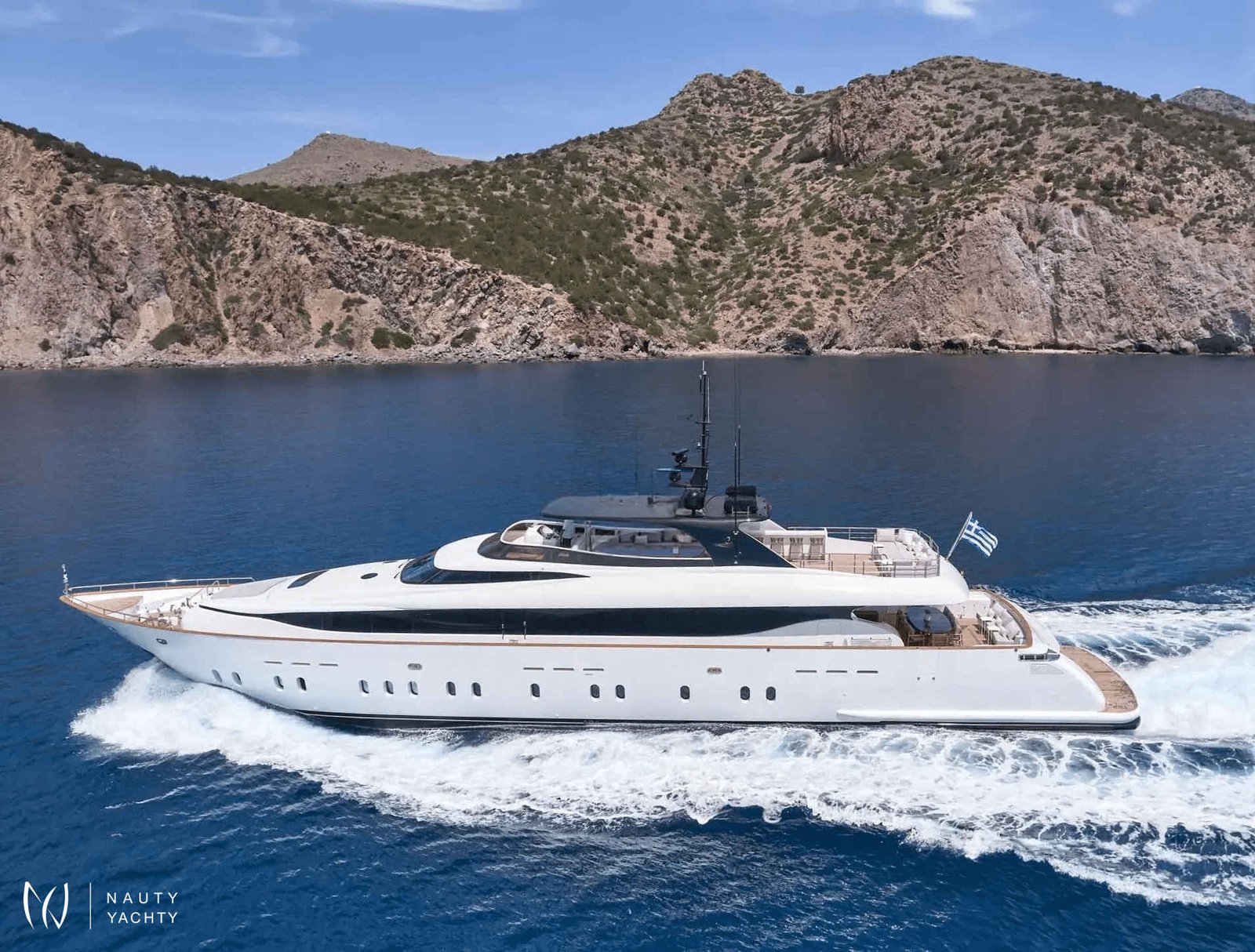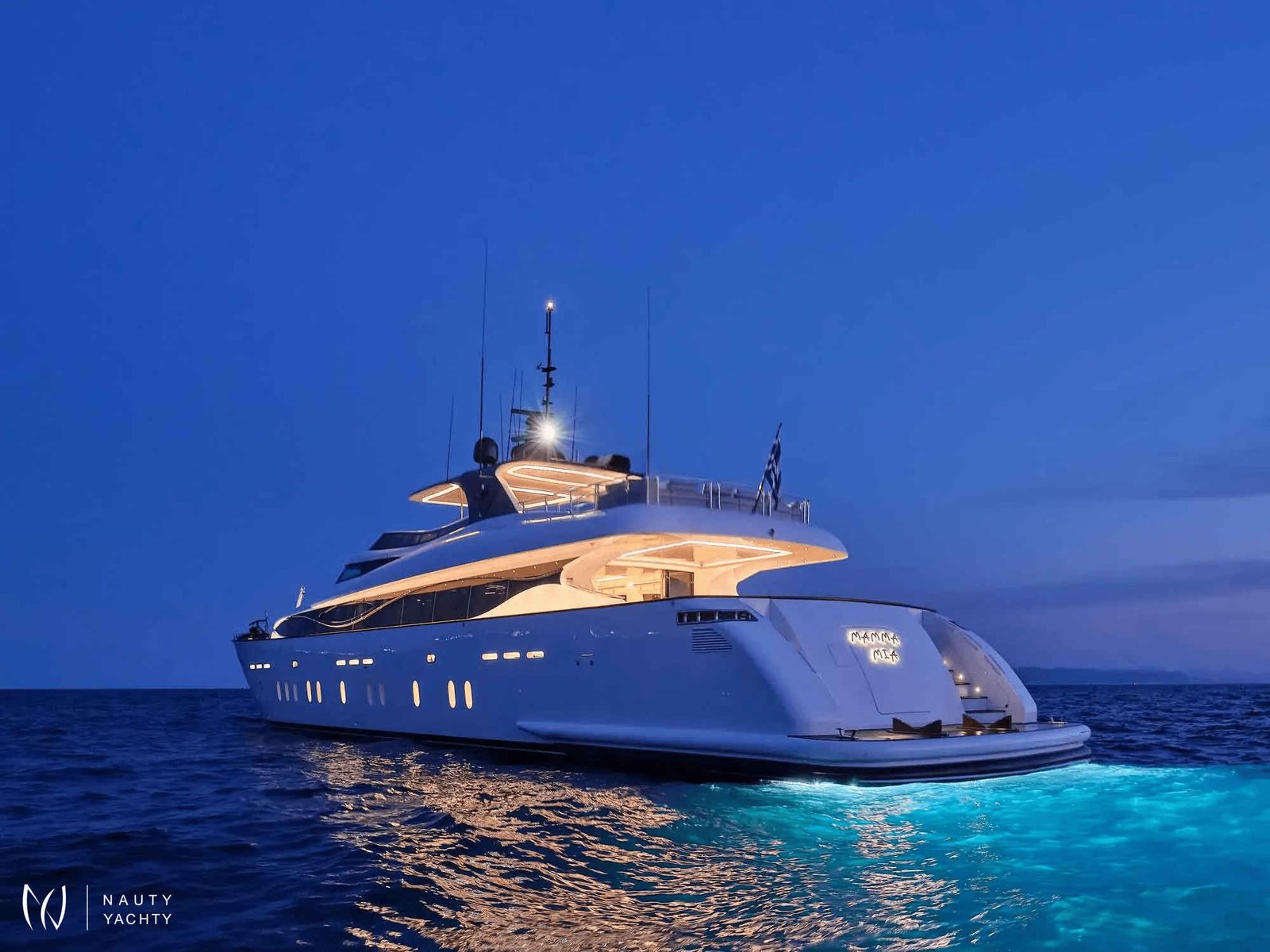 The versatile six-cabin layout, featuring a desirable main-deck VIP suite, provides exceptional accommodation. Alfresco living is perfected on her expansive sundeck, but the true highlight is her powerful Axopar 37 chase boat—your key to unlocking secret coves and exclusive seaside tavernas. Aboard MAMMA MIA, every moment is enhanced by her dedicated crew of nine and state-of-the-art stabilizers, ensuring absolute tranquility on your Greek odyssey.