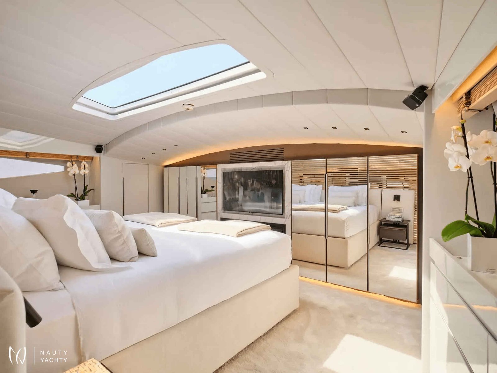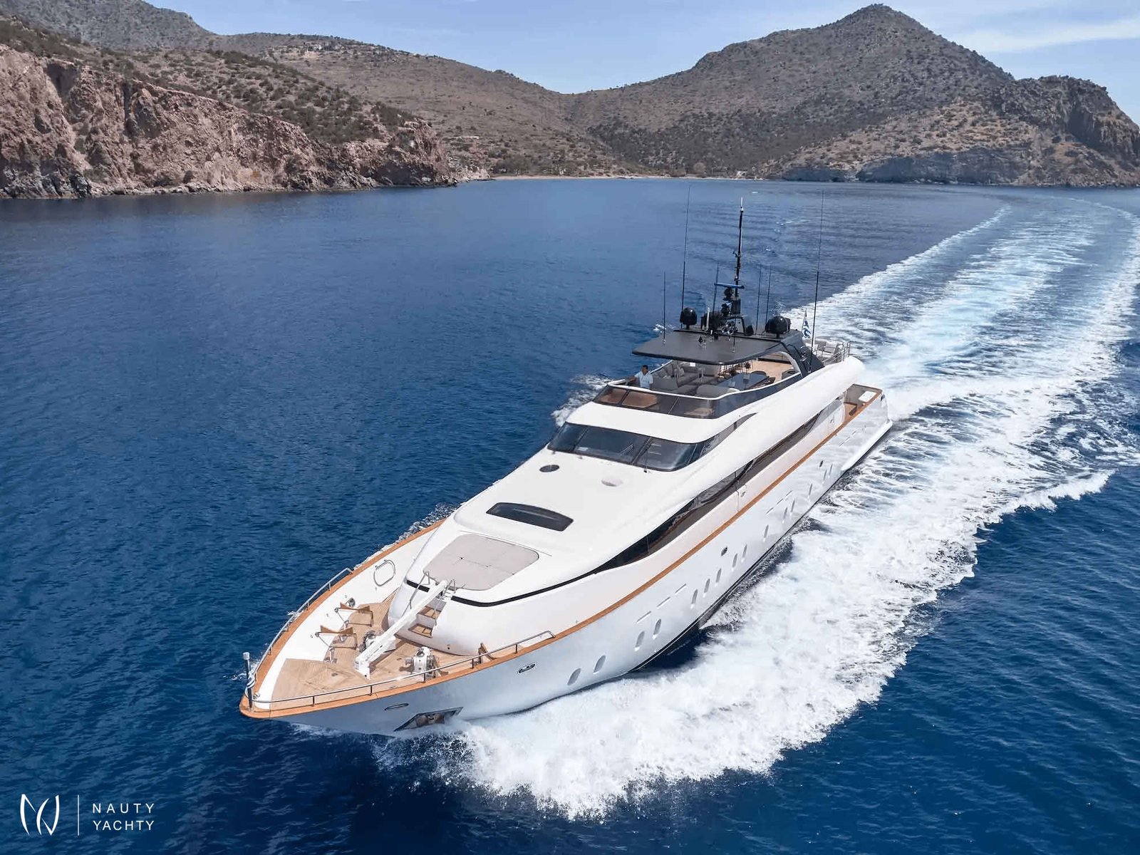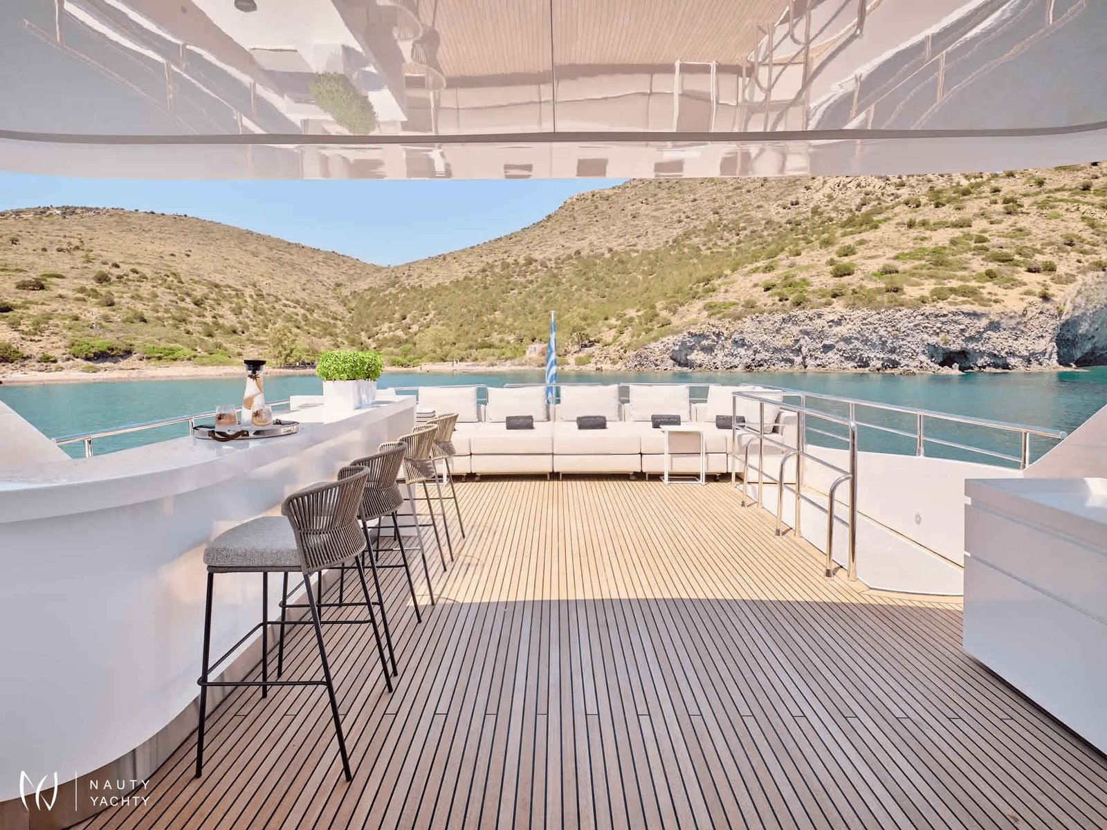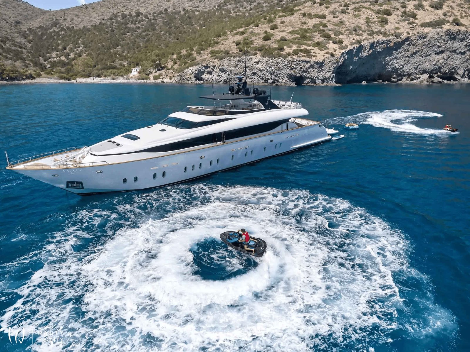 The versatile six-cabin layout, featuring a desirable main-deck VIP suite, provides exceptional accommodation. Alfresco living is perfected on her expansive sundeck, but the true highlight is her powerful Axopar 37 chase boat—your key to unlocking secret coves and exclusive seaside tavernas. Aboard MAMMA MIA, every moment is enhanced by her dedicated crew of nine and state-of-the-art stabilizers, ensuring absolute tranquility on your Greek odyssey.