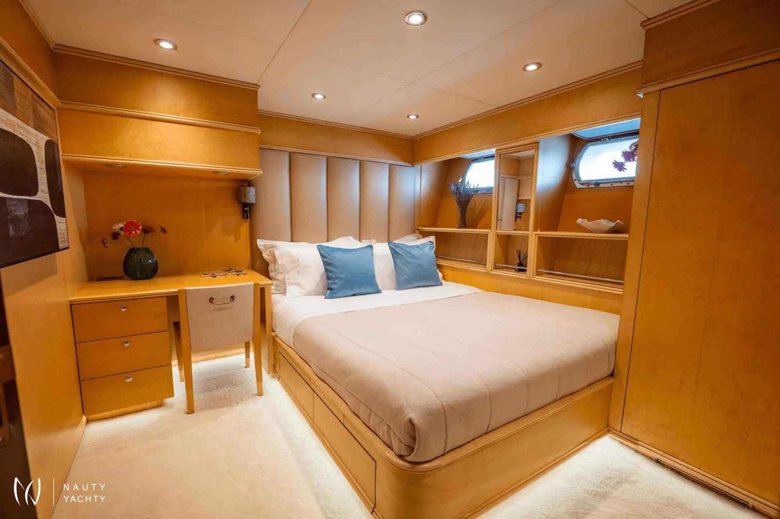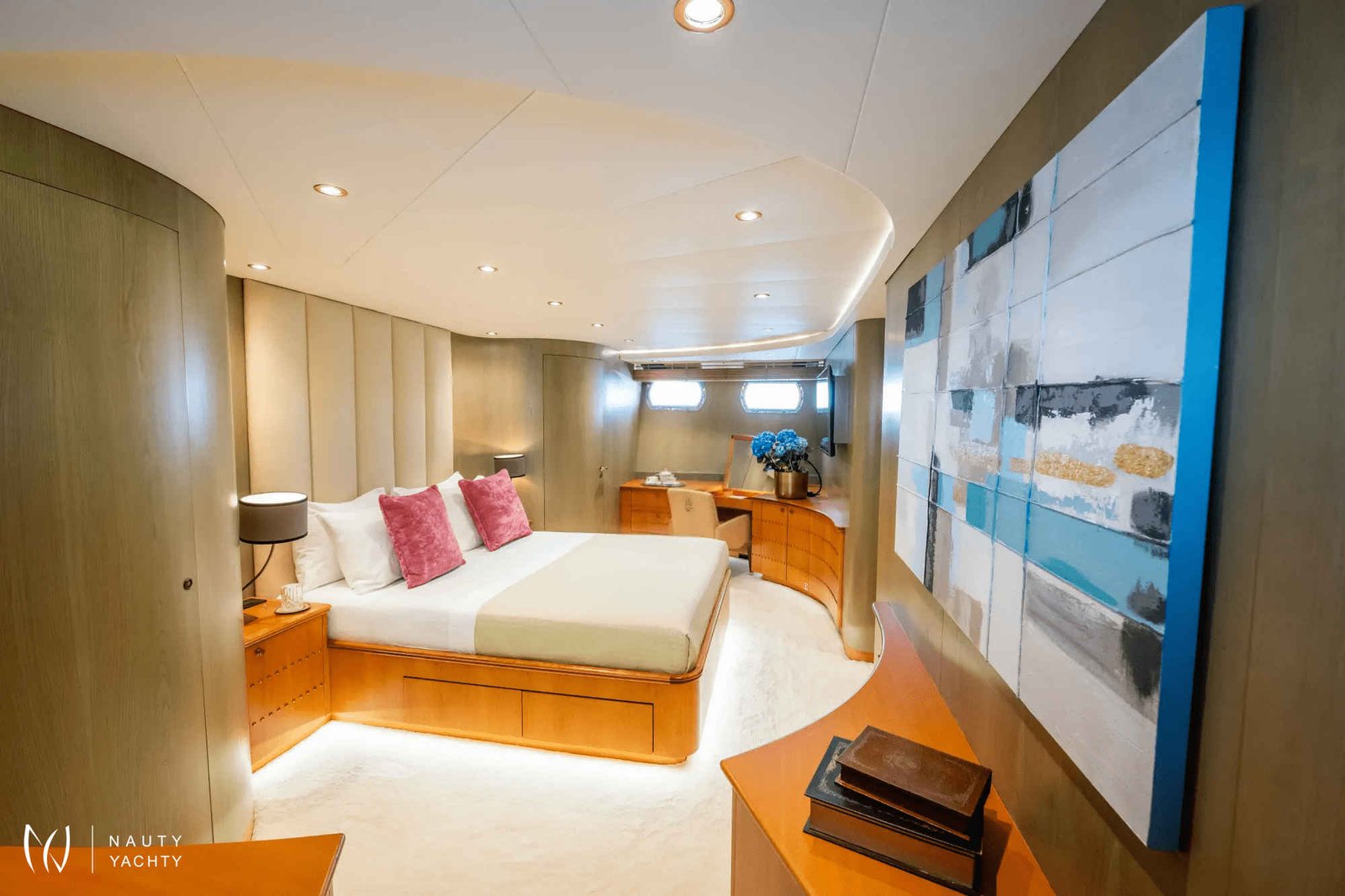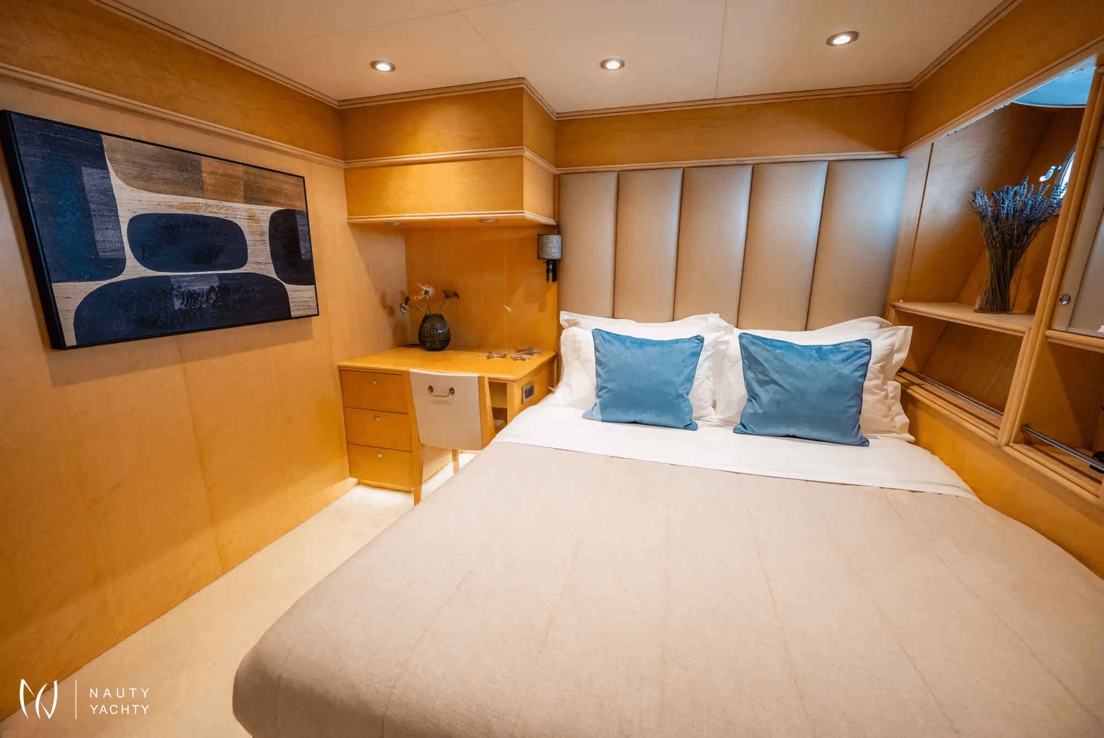 Step aboard and find your haven on the spacious sundeck, complete with a brand-new jacuzzi offering panoramic views of the Aegean Sea. Inside, the flexible five-cabin layout comfortably accommodates up to 11 guests, making MOBIUS an ideal choice for families and groups of friends. Her planning hull ensures an exhilarating cruising speed, perfect for crafting a dynamic island-hopping itinerary.