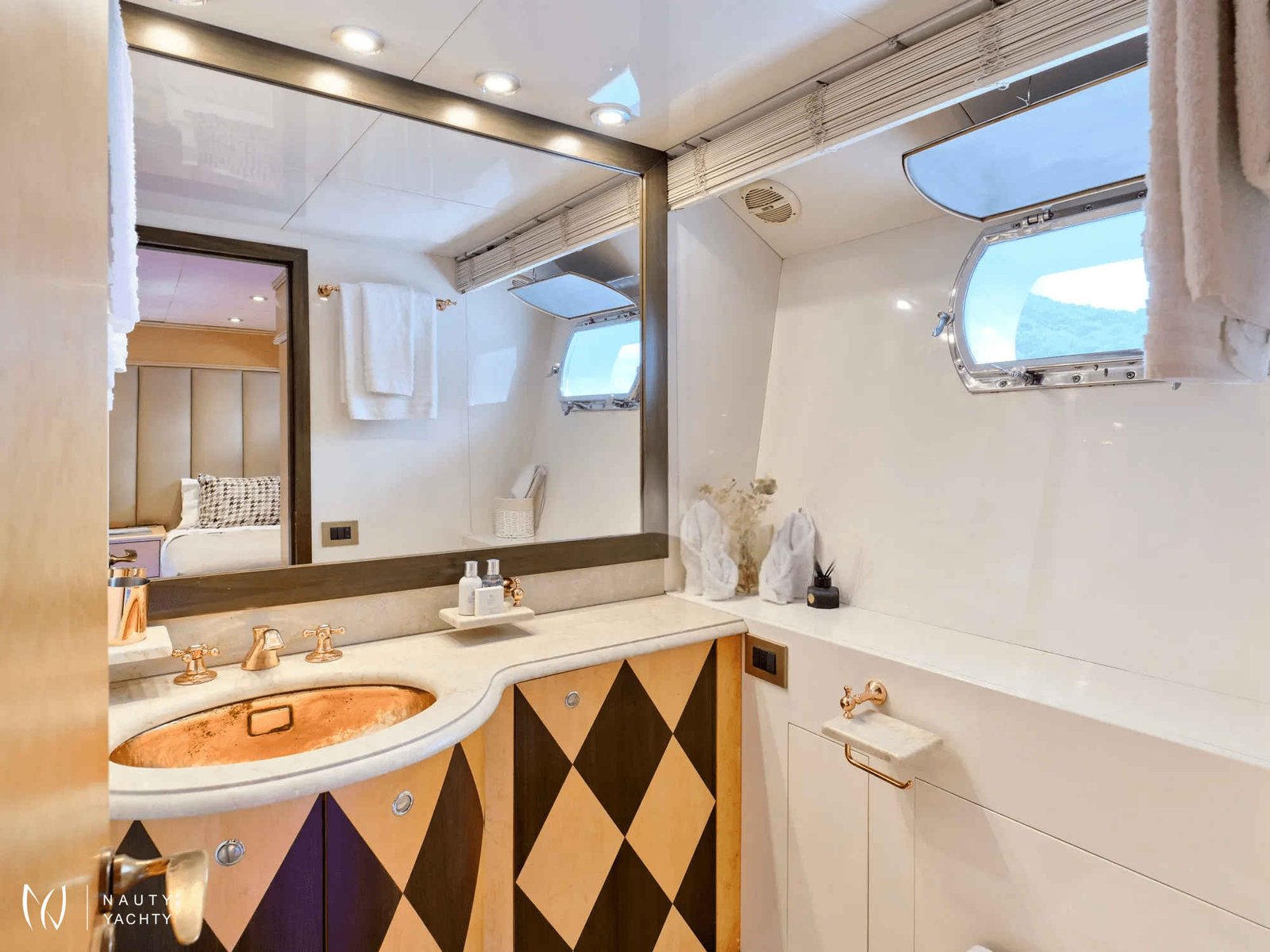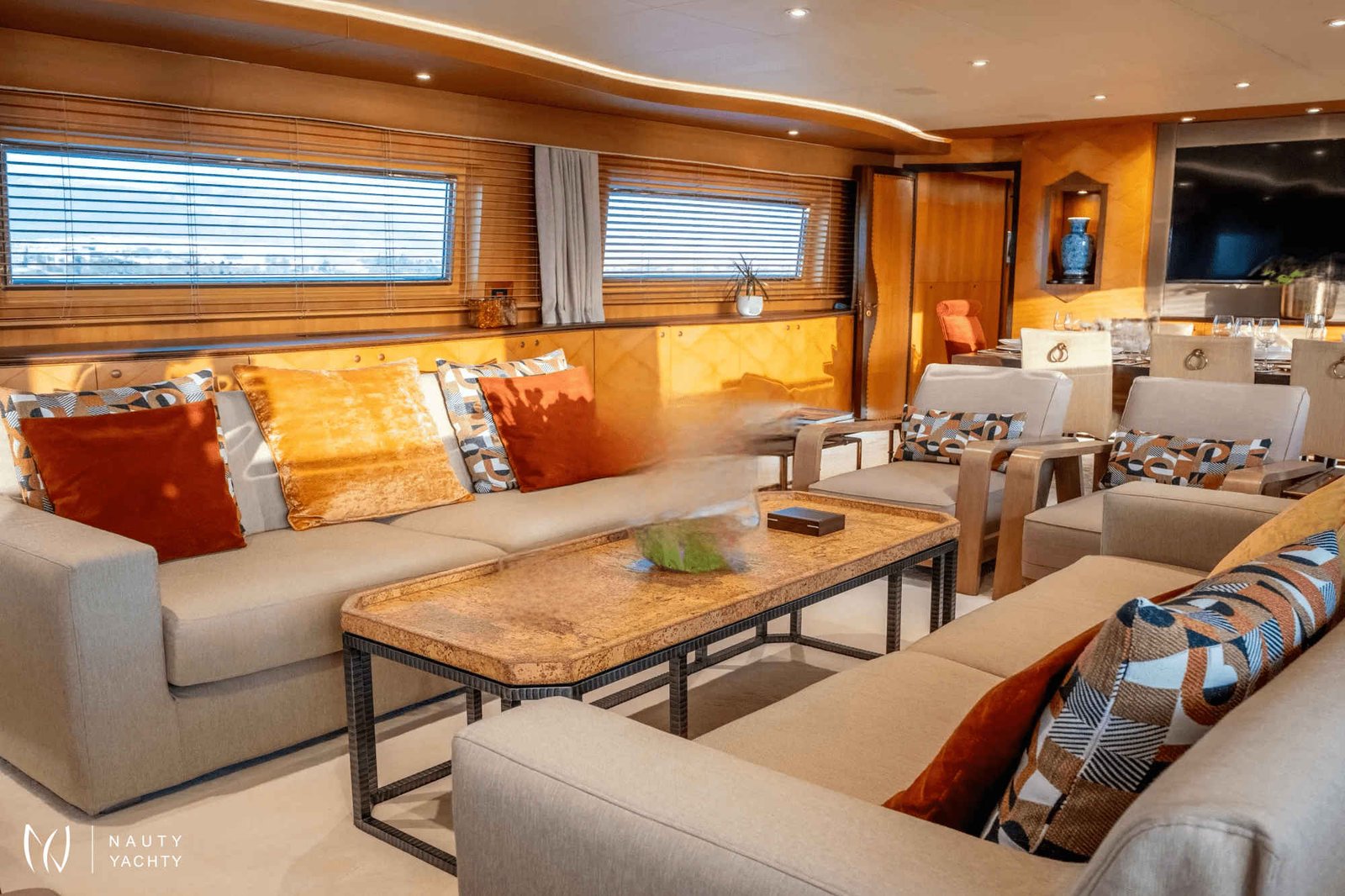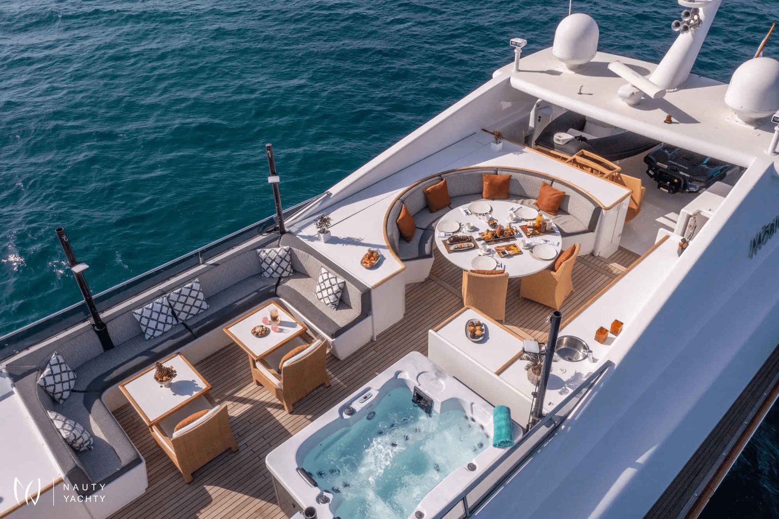 Step aboard and find your haven on the spacious sundeck, complete with a brand-new jacuzzi offering panoramic views of the Aegean Sea. Inside, the flexible five-cabin layout comfortably accommodates up to 11 guests, making MOBIUS an ideal choice for families and groups of friends. Her planning hull ensures an exhilarating cruising speed, perfect for crafting a dynamic island-hopping itinerary.
