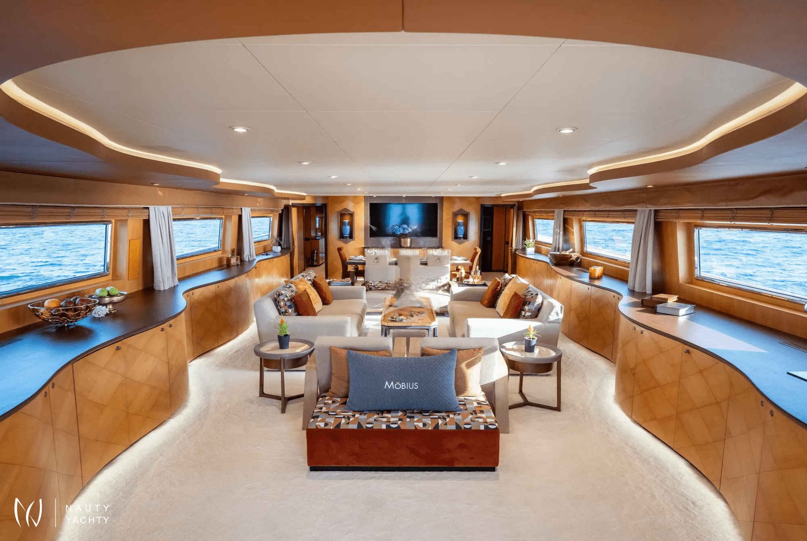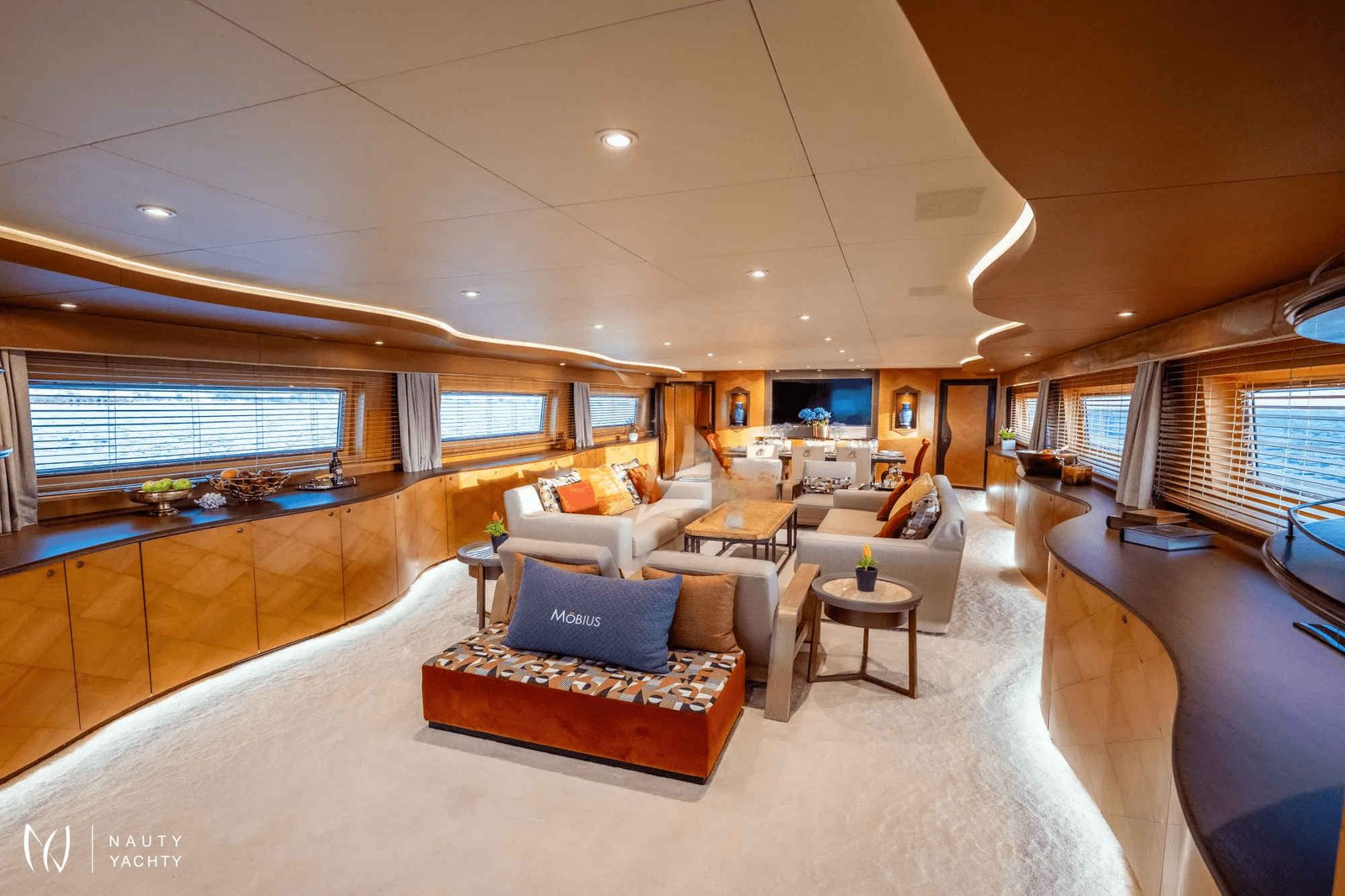 Discover the timeless elegance and modern luxury of MOBIUS, a magnificent 38m motor yacht poised to deliver the ultimate charter experience in the Greek Islands. Based in Athens, MOBIUS combines classic Italian craftsmanship with a stunning 2021 refit, creating an atmosphere of sophisticated comfort. Her interiors, masterfully styled by Agnes Comar, provide an inviting sanctuary for relaxation and entertainment.