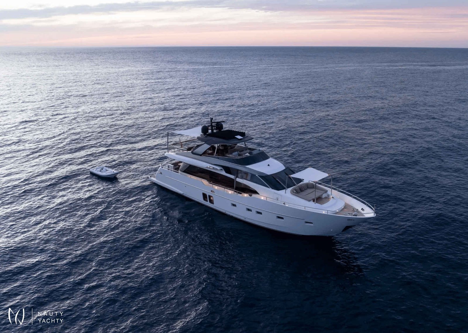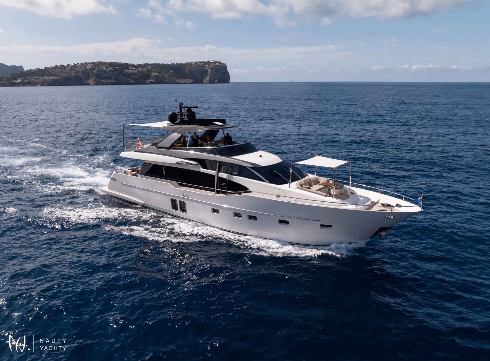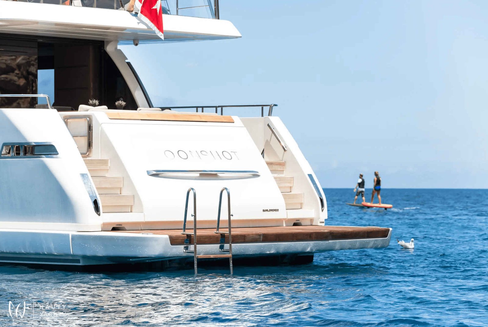 Embark on an extraordinary voyage through the Balearic Islands aboard MOONSHOT, a masterpiece of Italian design and engineering. Based in the prestigious port of Palma de Mallorca, this 25-meter Sanlorenzo yacht is your key to unlocking the sun-drenched coves of Ibiza, the pristine beaches of Formentera, and the hidden gems of the Mallorcan coastline.