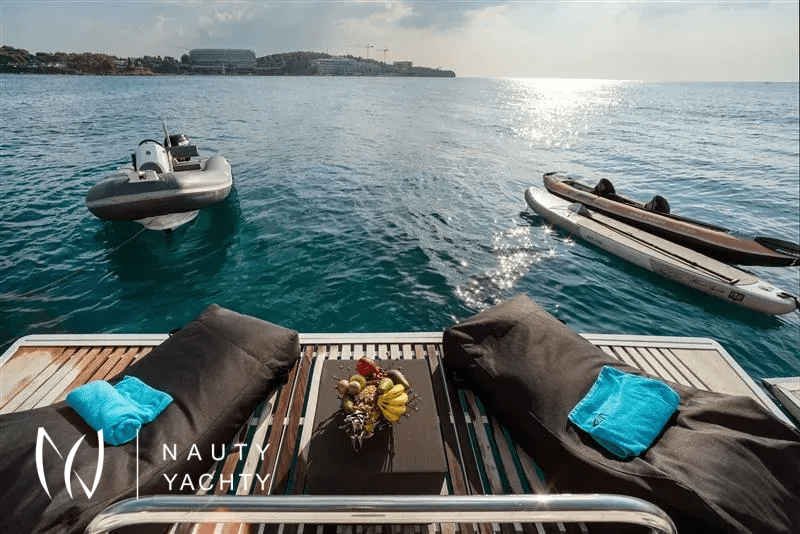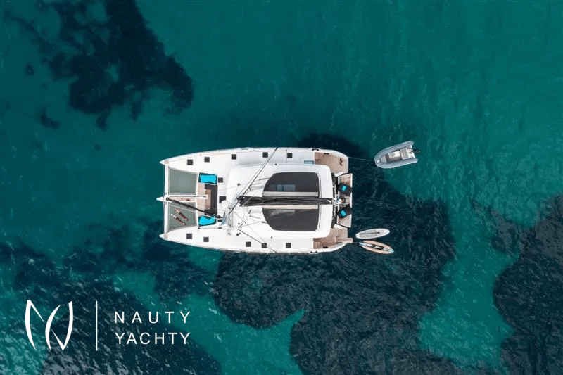 Moya is our Lagoon 560, a catamaran available for crewed charters throughout Greece. With 5 cabins and 5 wc it is perfect for groups of up to 10 guests.Moya ‘s genealogy comes from super yachts combining the world-renowned talents of the architectural firm VPLP and the design consultants Nauta and boasting all of the advanced features developed by the famous Lagoon Shipyard in one luxurious deep-water catamaran that will definitely exceed your expectations in terms of comfort, handling and style!Her layout is unmatched by any other catamaran of her size and her living space is phenomenal, including 5 truly huge totally independent cabins, an impressive sense of space in the saloon and galley, ample lounging space on the flybridge and more roominess than you could ask for dinning and lounging in the vast aft cockpit. Indulge yourself in the art of hospitality on a yacht considered by many the ultimate voyager’s catamaran!