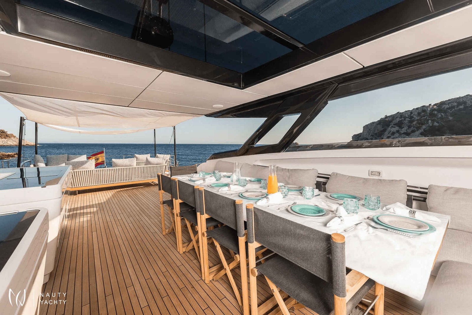 Unveil the future of Balearic exploration aboard the brand new (2024) motor yacht, NAILU +. A 30-meter masterpiece of Italian design, this Ferretti is your private sanctuary for an unforgettable charter experience, based in the heart of Mallorca.