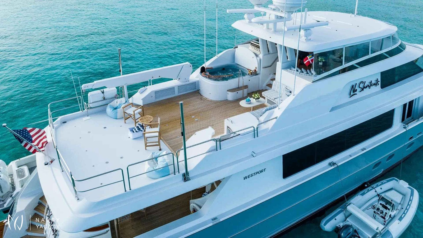 Discover the crystalline waters of the Bahamas aboard the magnificent 34m Westport motor yacht, NO SHORTCUTS. True to her name, this vessel promises an unparalleled charter experience where every detail is perfected, ensuring your escape to paradise is nothing short of extraordinary.