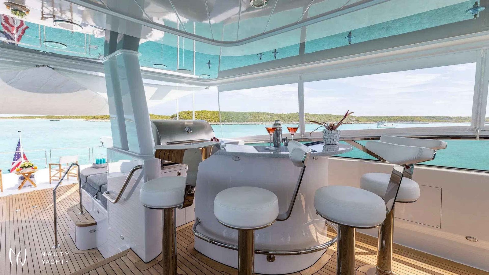 Fresh from an extensive 2022 refit, NO SHORTCUTS blends timeless American craftsmanship with contemporary elegance. Her sophisticated interiors provide a luxurious sanctuary as you cruise from Nassau to the secluded cays of the Exumas. The philosophy aboard is simple: there are NO SHORTCUTS to creating the perfect vacation. Her professional crew of six is dedicated to delivering bespoke service, anticipating your every need with grace and expertise.