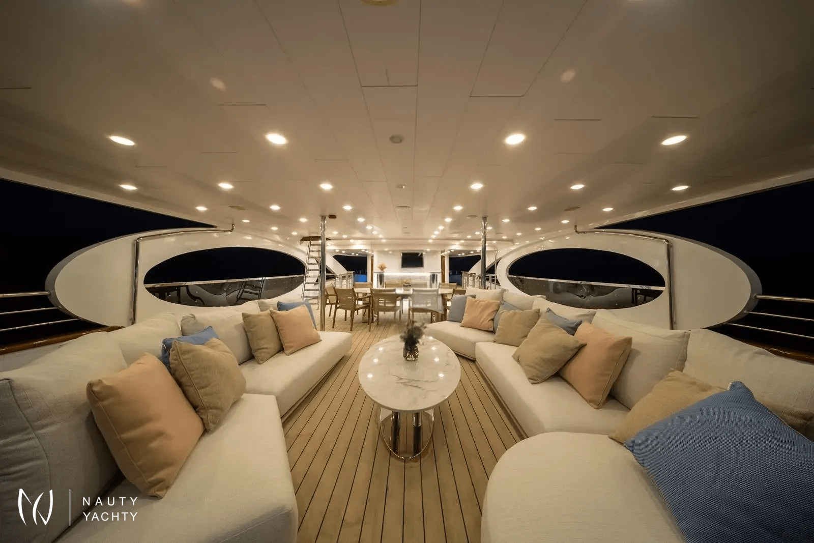 Designed for sublime comfort and sophisticated entertaining, the expansive decks of Olimp are your private sanctuary at sea. Unwind in the bubbling jacuzzi on the sundeck, soak up the Mediterranean sun on plush loungers, or dine al fresco in the shaded aft lounge. Inside, the elegant salon provides a cool, contemporary haven for socializing after a day of discovery.