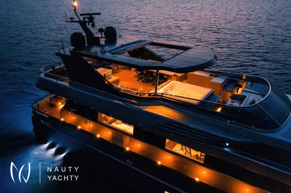 Her exterior decks are an oasis of luxury. The exceptionally large sundeck, complete with an opulent Jacuzzi, offers panoramic views while you dine al fresco. A spacious beach club provides intimate access to the turquoise waters, complemented by a wide array of water toys for endless aquatic fun.