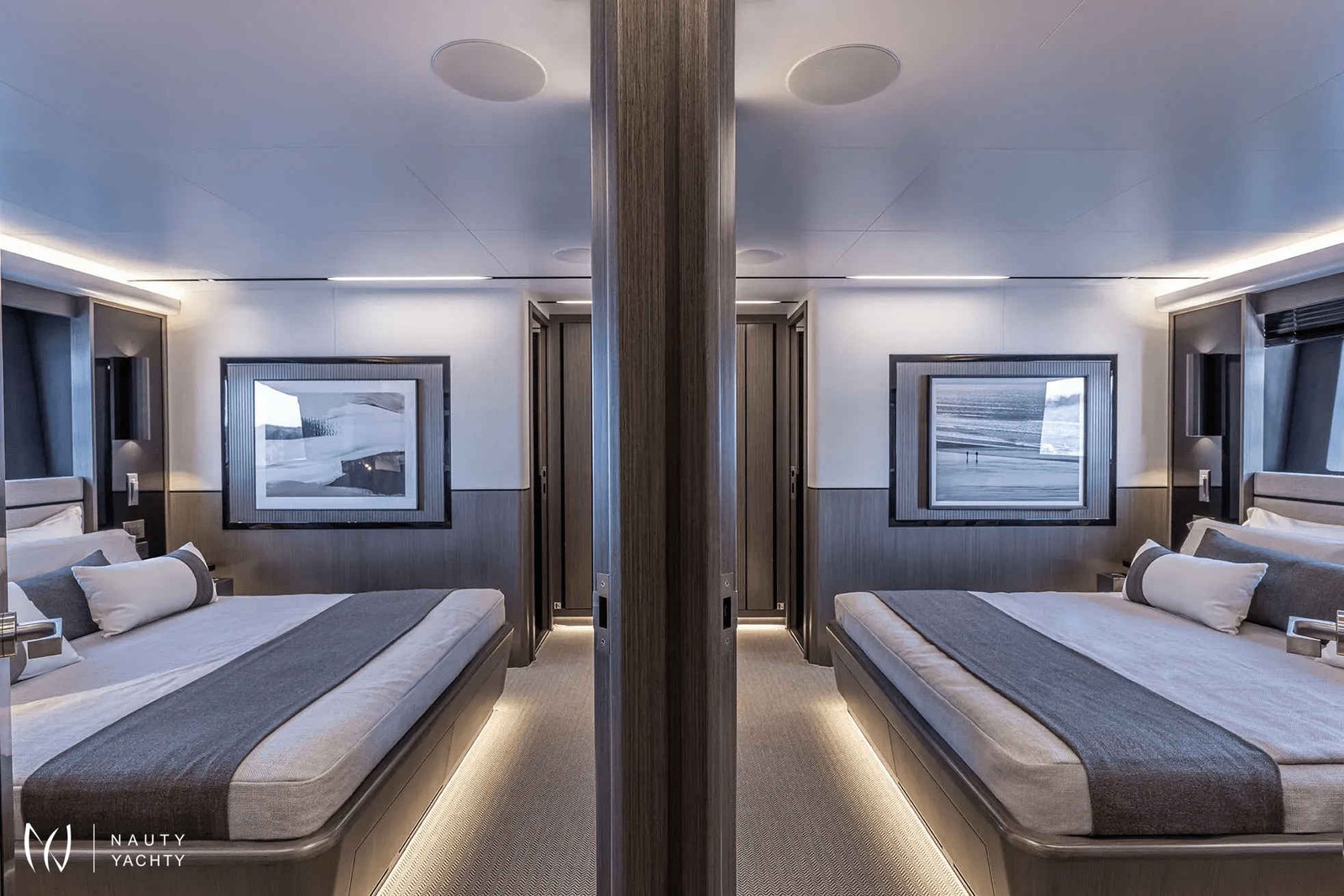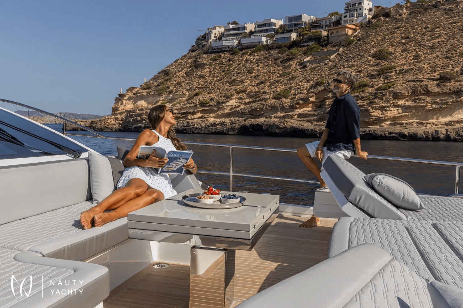 With an impressive cruising speed of 22 knots, PEARLY SPENCER promises stylish, swift passages between the captivating islands of Mallorca, Ibiza, and Formentera.