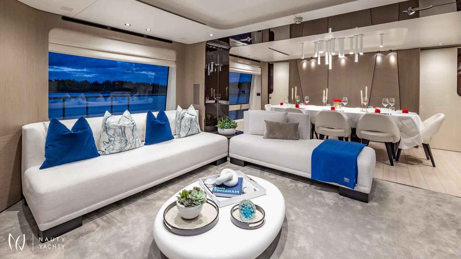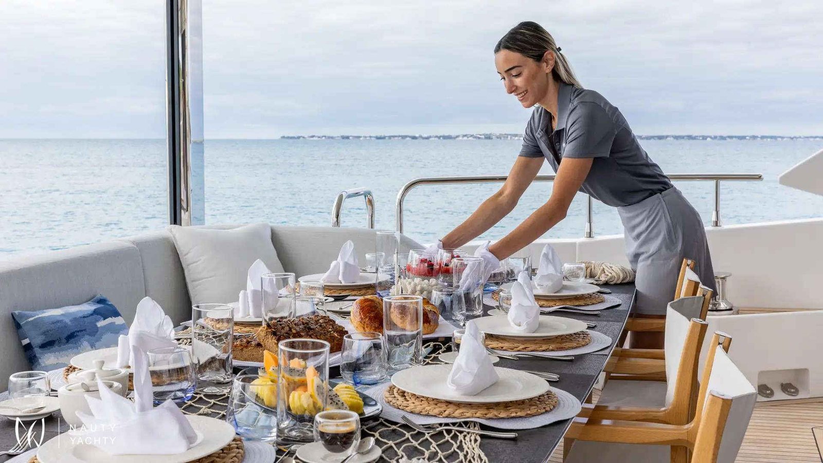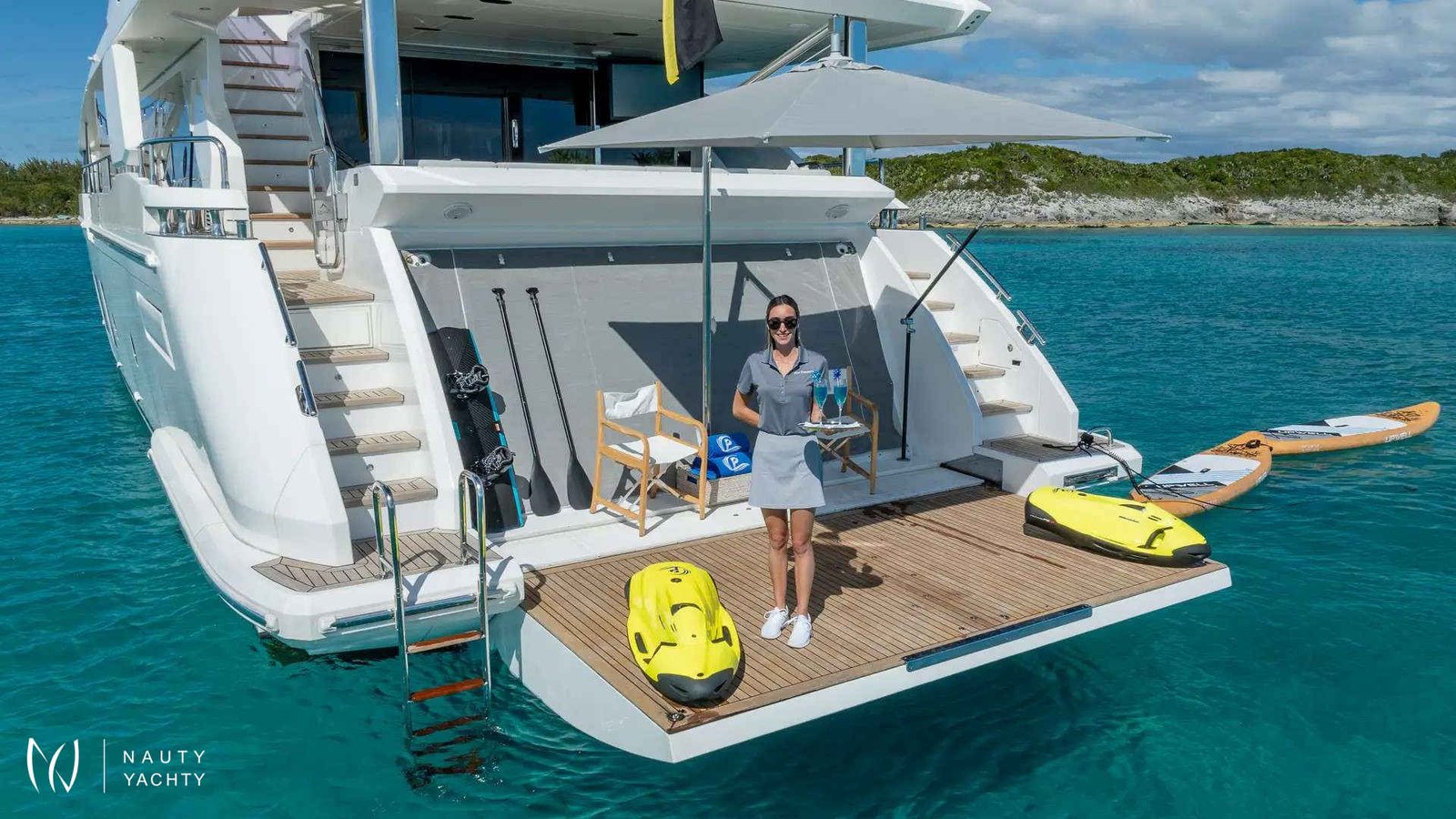 Onboard, PIER PRESSURE offers a sanctuary of comfort and style. Her sophisticated interiors welcome guests to relax and socialize, while the expansive decks provide the perfect stage for sun-drenched afternoons and starlit dining. A professional crew of four is dedicated to crafting a bespoke itinerary tailored to your desires, ensuring a seamless and unforgettable charter experience from start to finish.