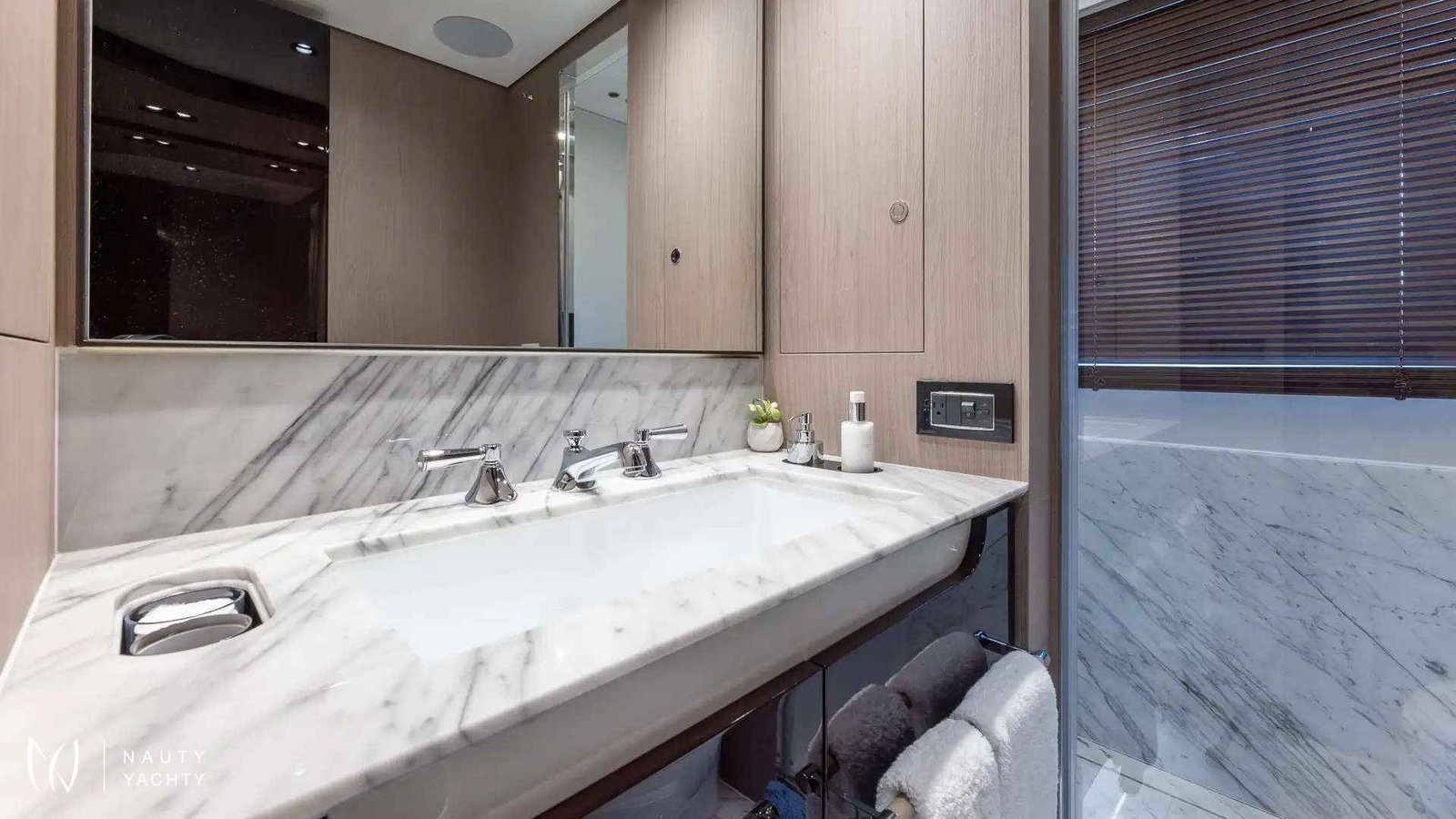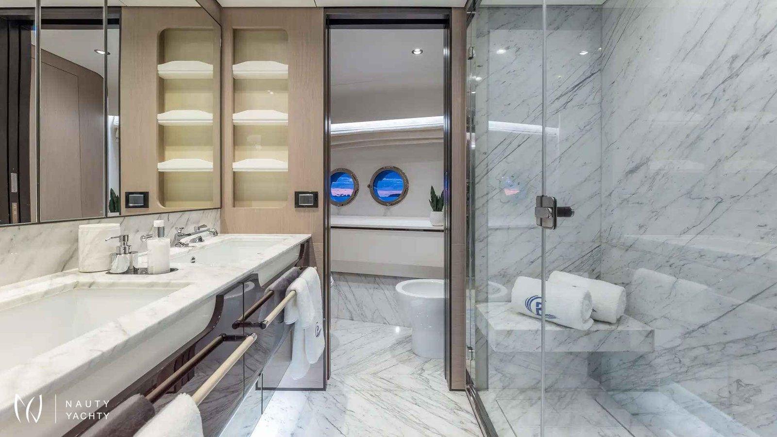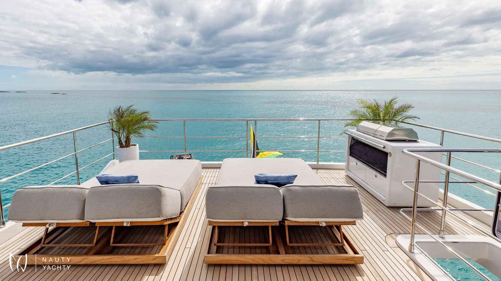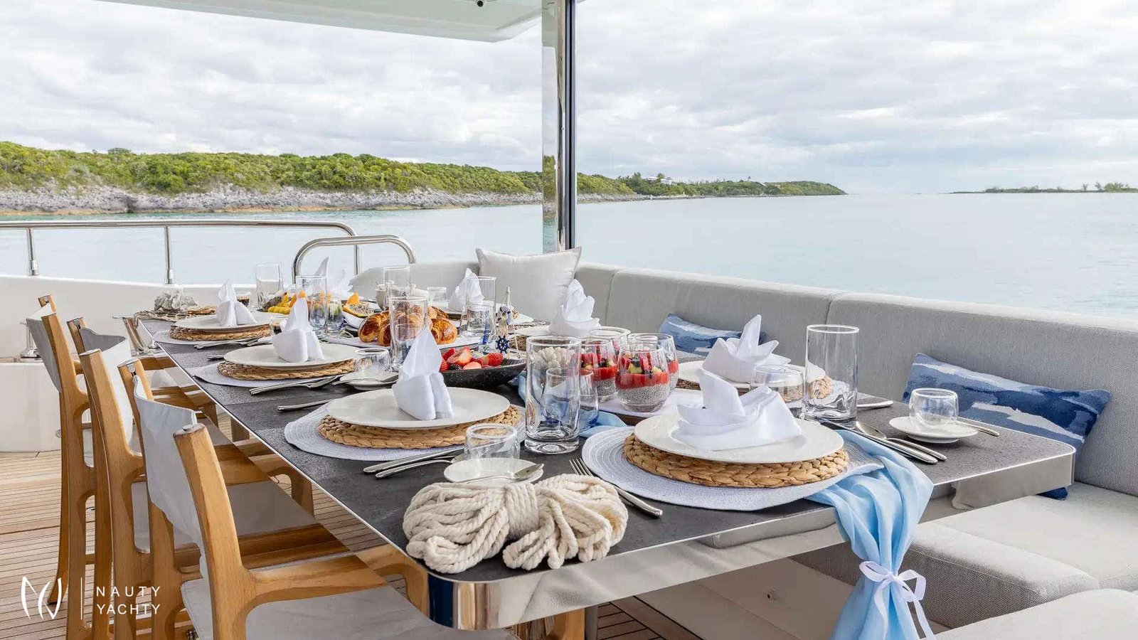 Onboard, PIER PRESSURE offers a sanctuary of comfort and style. Her sophisticated interiors welcome guests to relax and socialize, while the expansive decks provide the perfect stage for sun-drenched afternoons and starlit dining. A professional crew of four is dedicated to crafting a bespoke itinerary tailored to your desires, ensuring a seamless and unforgettable charter experience from start to finish.