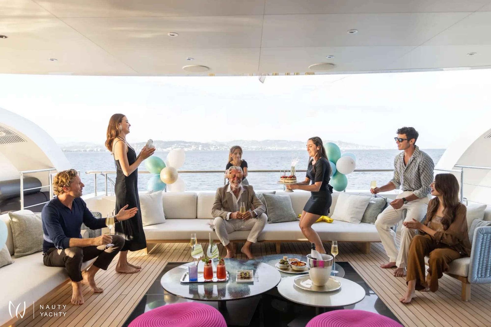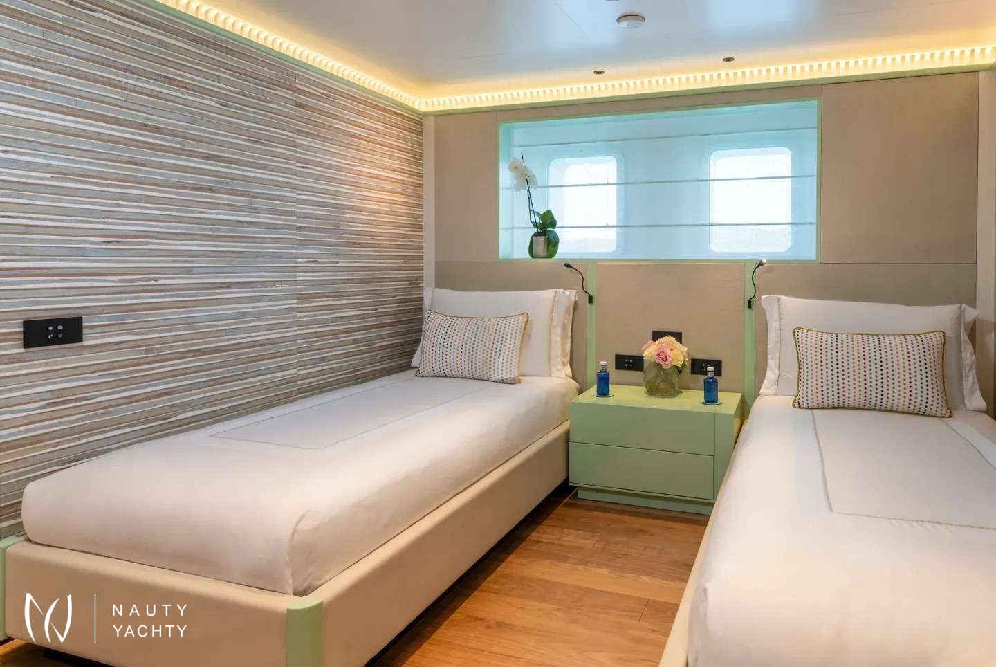 Her thoughtfully designed interior provides an intimate and luxurious setting for your charter, promising an unparalleled guest experience:
