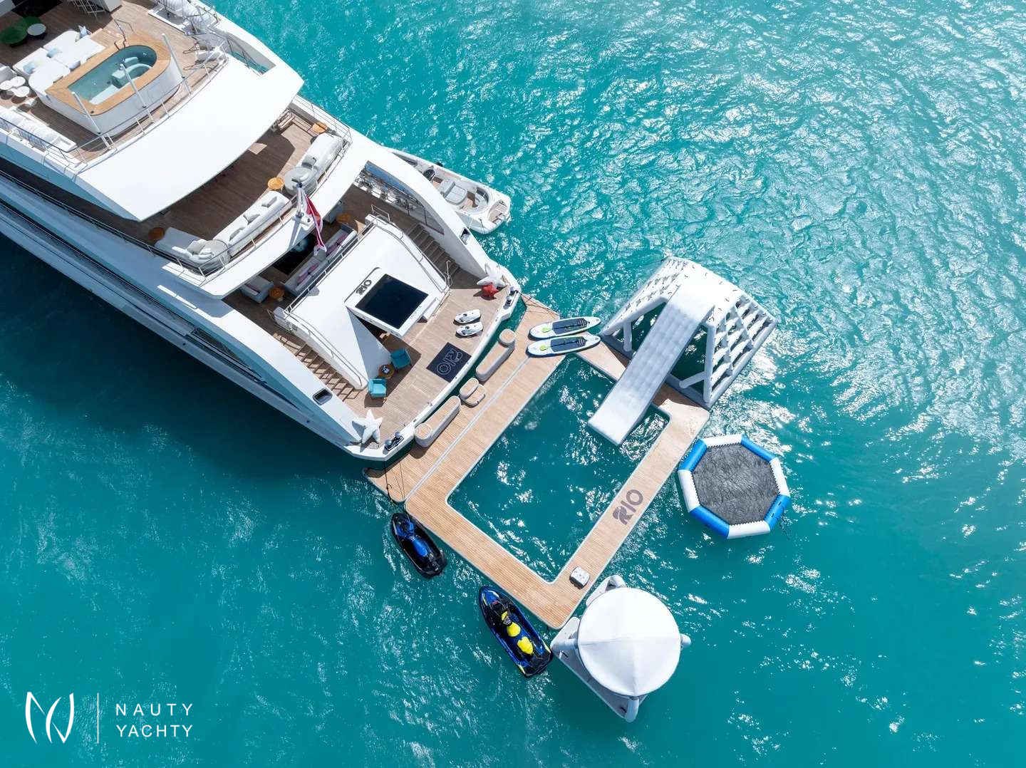 Embark on an unforgettable odyssey through the azure waters of the Greek Isles aboard the magnificent motor yacht RIO. Launched in 2022, this 27-meter vessel combines contemporary elegance with exceptional comfort, offering an exclusive sanctuary for exploring Greece's most enchanting destinations. From the Cyclades' iconic villages to the Ionian's emerald coves, RIO is your private gateway to paradise.