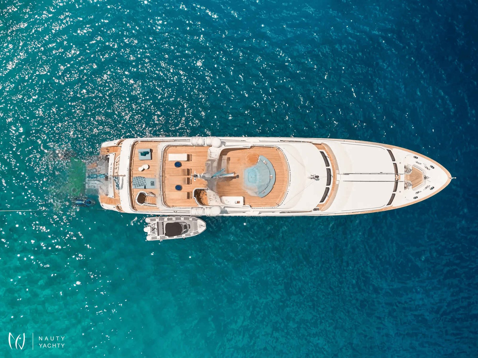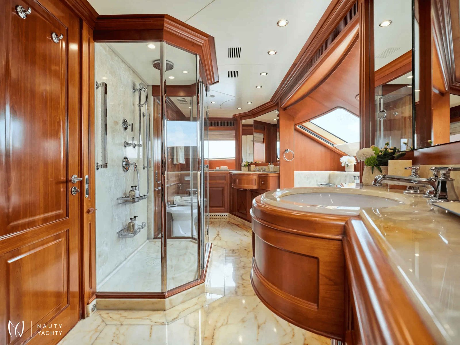 RIVA I graciously accommodates up to 12 guests across six staterooms, including a sublime main-deck Master suite with a private study. Her expansive decks are designed for pure indulgence, from the sun-drenched flybridge with a Jacuzzi and bar to the elegant alfresco dining area on the upper deck. A dedicated crew of eight ensures every detail is flawlessly executed.