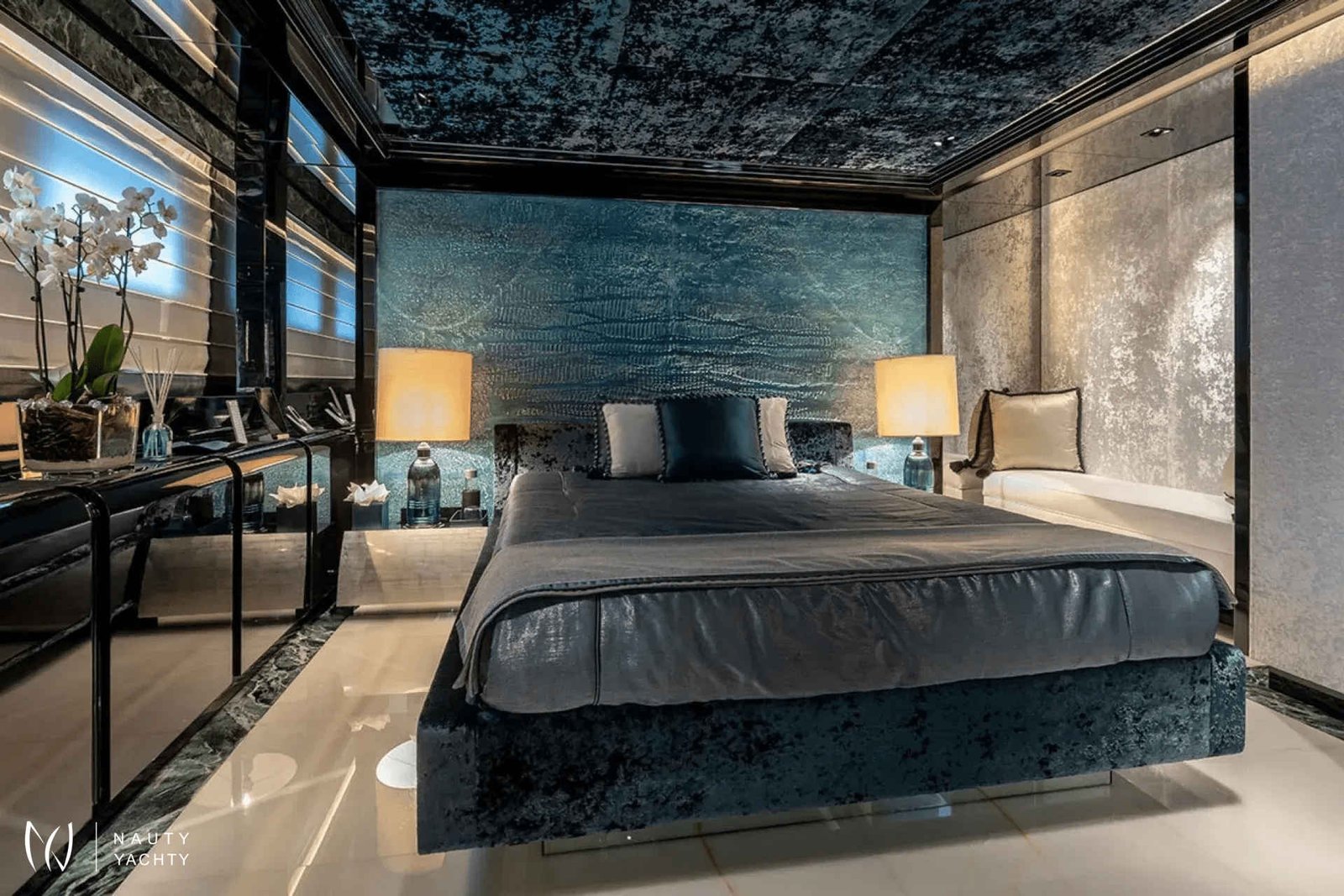 60m SARASTAR is a striking and opulent superyacht designed for total luxury on the open seas. Well-known for its lavish interiors and, with transatlantic range and the ability to reach speeds exceeding 20 knots, SARASTAR is a rare combination of high-performance and unbridled decadence. From its sleek, sculpted hull to its vibrant, eclectic interiors, every inch exudes sophistication and attention to detail.One-of-a-kind from bow to stern, more is more onboard SARASTAR.INTERIORGlamorous and full of drama, SARASTAR was designed by the hand of an owner in pursuit of perfection; its interior design full of lush materials and an exacting eye for quality.Back-lit white and green onyx lines the main salon, a spacious affair with a huge cinema screen and a state-of-the-art Kaleidescape M300 entertainment system perfect for cinephiles. Fine marble line its floors and artistic furnishings fill its spaces, providing a decadent backdrop. In this space, the lounge and formal dining areas are divided by a back-lit onyx island that at a push of a button transforms into a bar to offer seamless service. Above the stunning dining table is a striking custom Baldi amber crystal chandelier.The bridge deck salon provides another impressive lounge area with stunning deep-seated white velvet and black silk sofas, exquisite crystal tables, and the same impressive mirror TV setup as the salon below. A solid single-piece of onyx serves as yet another decadent dining option onboard and can light-up for just that little bit of "extra".Spectacular stairs made of polished steel and illuminated white onyx extend across all interior decks. Framing this stairwell is an exquisite ‘living sculpture’ by artist Lorenzo Malfatti which is made of crystal and LED lights which change colour.ACCOMMODATION:SARASTAR comfortably accommodates up to 12 guests over six cabins that rival the world’s most luxurious hotels. Each guest cabin has its own distinct personality showcasing custom silk textiles by Stefano Ricci, exotic marbles, and semi-precious stones.Master suite:SARASTAR's stunning master suite on the main deck is a masterclass in high-end design, featuring deep blue onyx detailing, a plush velvet ceiling, and fold-down balconies on both sides, offering a private sanctuary. The master suite also boasts his-and-hers bathrooms connected by an opulent walk-through Italian shower finished in gorgeous deep blue marble.Guest cabins:An additional five cabins, four double and one twin, can be found on the lower deck. All are indulgently appointed in a different color: rich purple, royal blue, glittering gold, bronze, petroleum, and rose and feature luxurious bathrooms.EXTERIORDesigners at Lucas Dini placed great emphasis on natural lighting, with skylights installed across both of SARASTAR's upper teak decks flooding the aft areas with natural light during the day and illuminating in the evening to create the perfect ambience. A backlit onyx staircase provides access from the main deck up to the sundeck.SARASTAR's main deck aft provides plush, casual seating undercover with 180-degree unimpeded views. If alfresco dining is desired, the deck above offers a large table on the spacious bridge deck aft. There is also a retractable awning available to provide shade and additional seating in large comfortable armchairs for relaxing in pre and post meal times.The foredeck is impressive with a vast open bow that can be transformed into a dance floor or a sunbathing oasis. This versatile space is perfect for taking in the sights or enjoying a private outdoor gathering. The generous seating and sunbathing areas can be sunny or shaded with convenient optional awnings. Note no heli-ops are possible for charter, the helipad is for emergency use only.SARASTAR’s sundeck is nothing short of spectacular. This oversized, open-plan space is a true highlight of the yacht, featuring a large glass-enclosed bar, a spacious lounge area and a workout space with panoramic views. Guests can enjoy the sun by day or host glamorous parties by night. A subtle glass surround provides protection from the breeze without impeding the view, and a full-beam cactus garden adds a surprising and unique touch, bringing a bit of the desert to the seas!Below, SARASTAR's sizeable beach club offers its own private retreat with sun loungers and seating during the day, and in the evening it transforms into another alfresco bar area with nightclub vibes from the ambient floor lighting.HOLLYWOOD CRED:Adding a touch of Hollywood glamour to an already utterly glamorous yacht, SARASTAR under the fictious name “Mediterranean Queen” starred in the 2019 Netflix film "Murder Mystery", featuring Jennifer Aniston and Adam Sandler.