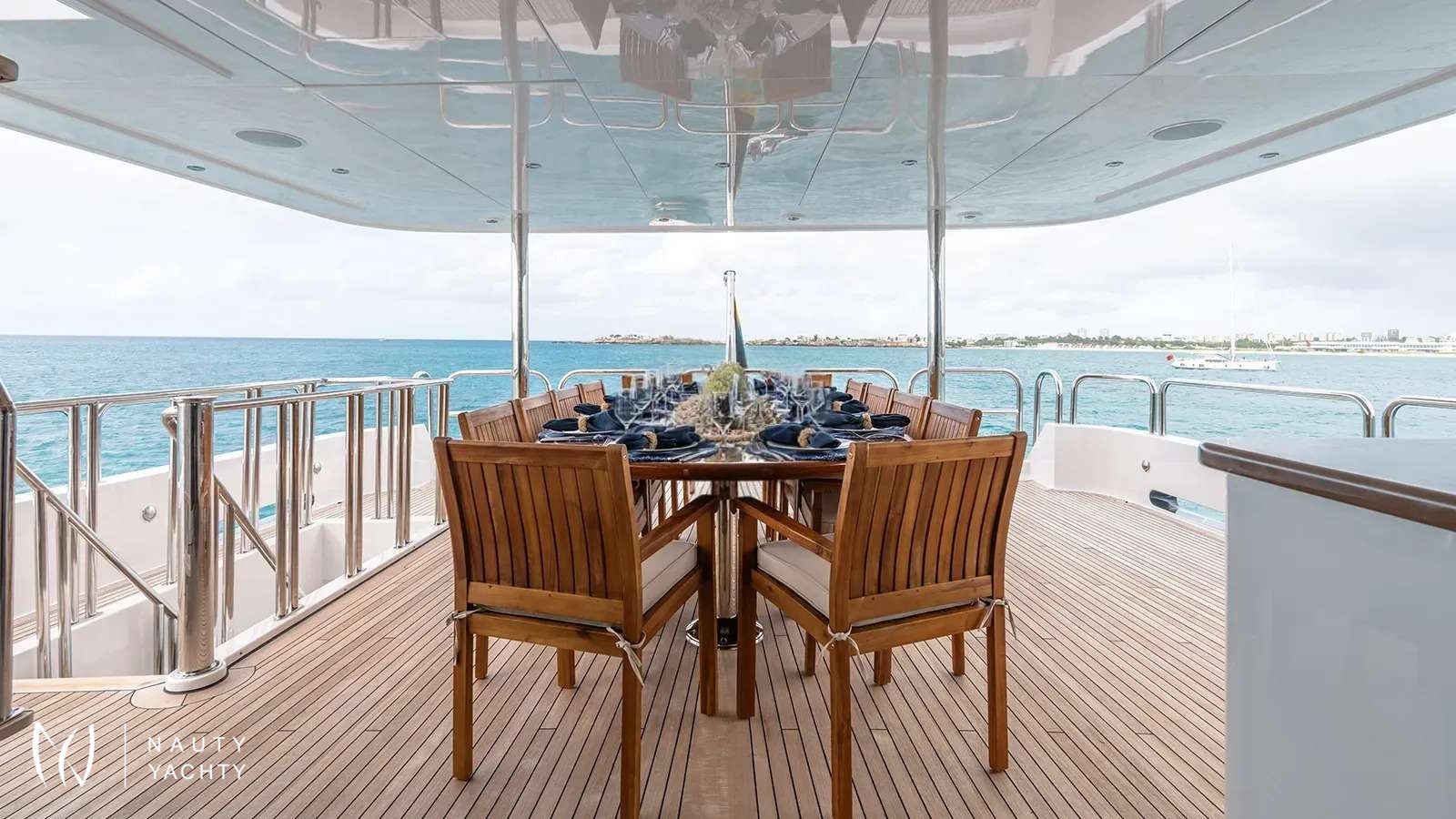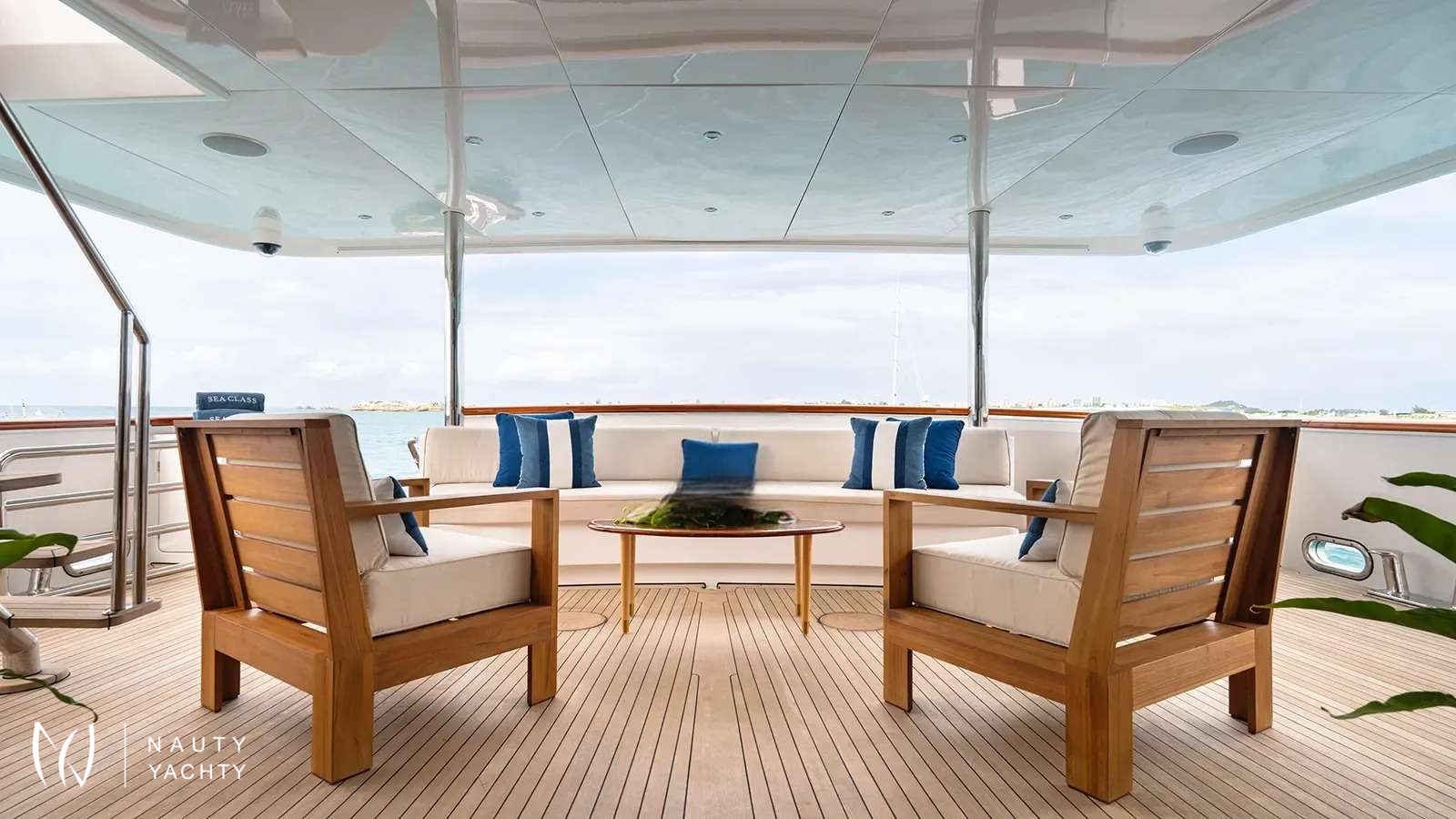 The true essence of a SEA CLASS charter lies in her incredible connection to the sea. The sprawling sundeck, complete with a Jacuzzi and panoramic views, is the perfect social hub. For the more adventurous, an astonishing collection of water toys awaits, promising endless thrills on the turquoise Bahamian waters. With a highly professional crew of ten ensuring every detail is perfected, SEA CLASS sets the benchmark for an unforgettable luxury charter experience.