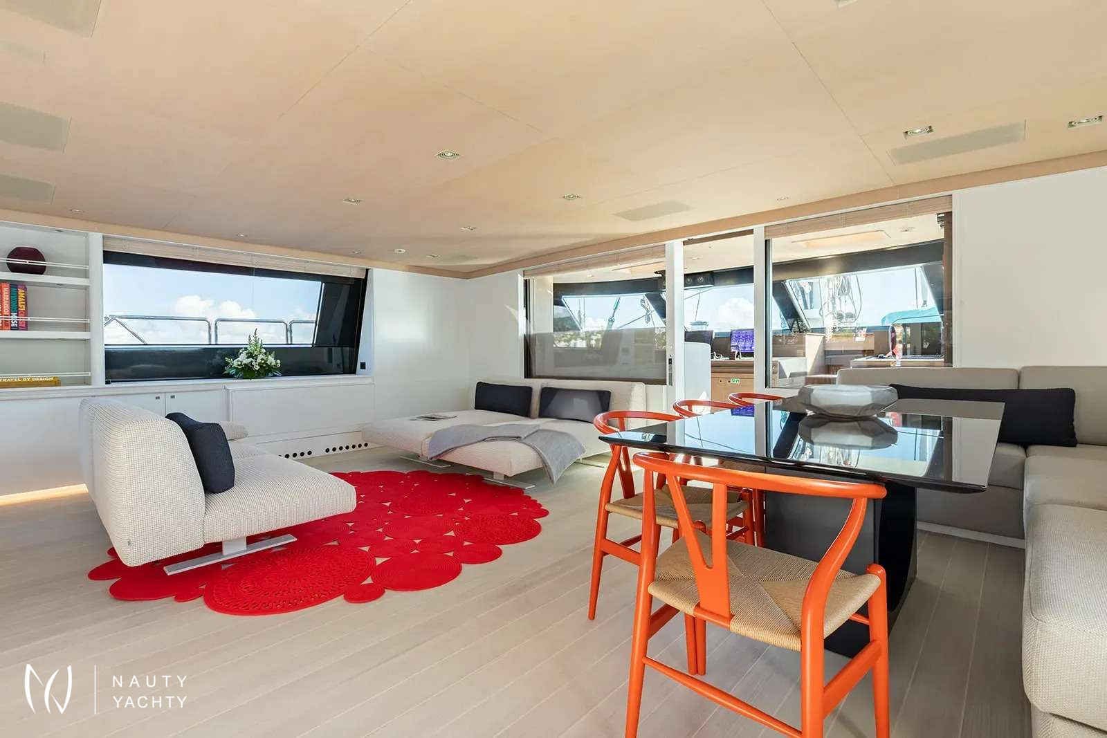 Following a comprehensive 2022 refit, her interiors are a sanctuary of light, texture, and modern sophistication. Sun-drenched living spaces invite relaxation, while the intelligent and versatile cabin layout comfortably welcomes up to 12 guests for restful nights after a day of sun-drenched exploration. A true sailor's dream, SERENDIPITY I balances exhilarating performance with serene comfort, all under the care of her professional 7-person crew who are dedicated to curating your bespoke charter experience.