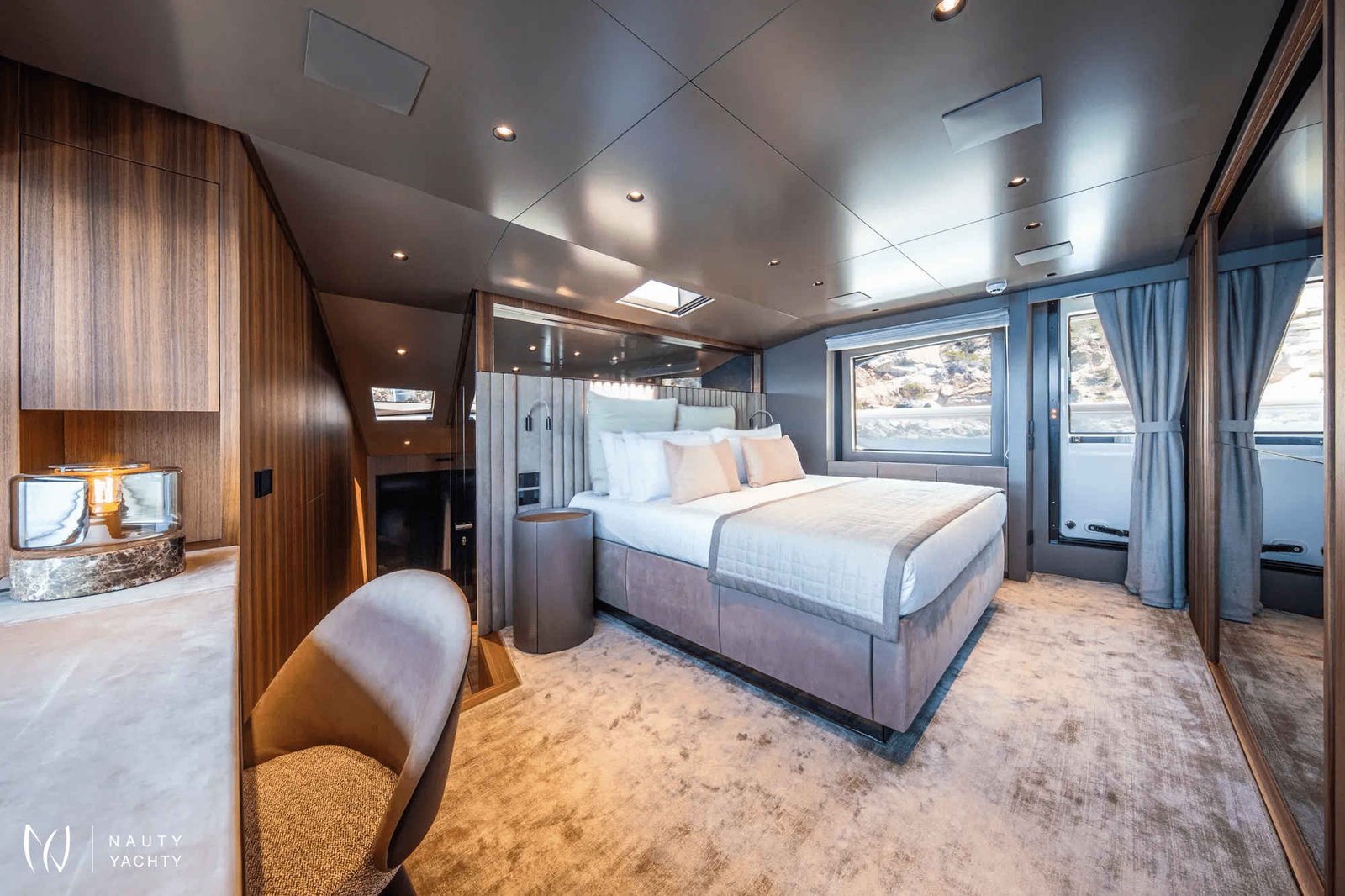 Discover the Greek Isles from a revolutionary perspective aboard the motor yacht SEVEN. Her award-winning asymmetrical design redefines luxury at sea, creating an unparalleled sense of volume and a breathtaking connection to the Aegean. Floor-to-ceiling windows dissolve the boundaries between the chic, contemporary interior and the stunning seascape, bathing the main salon in Mediterranean light.