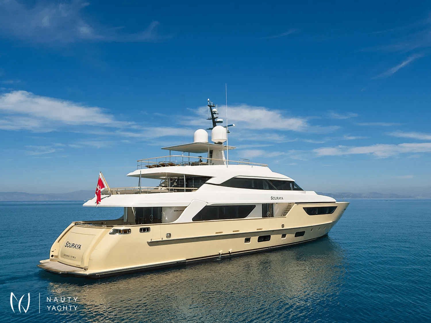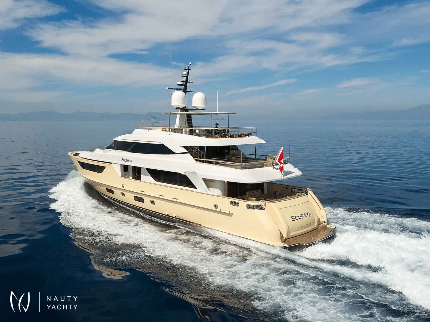 Discover the enchanting Greek Isles in unparalleled style aboard the magnificent 38m motor yacht SOURAYA. A distinguished Sanlorenzo creation, she offers a perfect blend of Italian elegance and modern comfort, making her the ultimate vessel for a luxury charter departing from Athens. Her sleek profile and cruising speed of 14 knots promise an exquisite island-hopping adventure through cerulean waters.