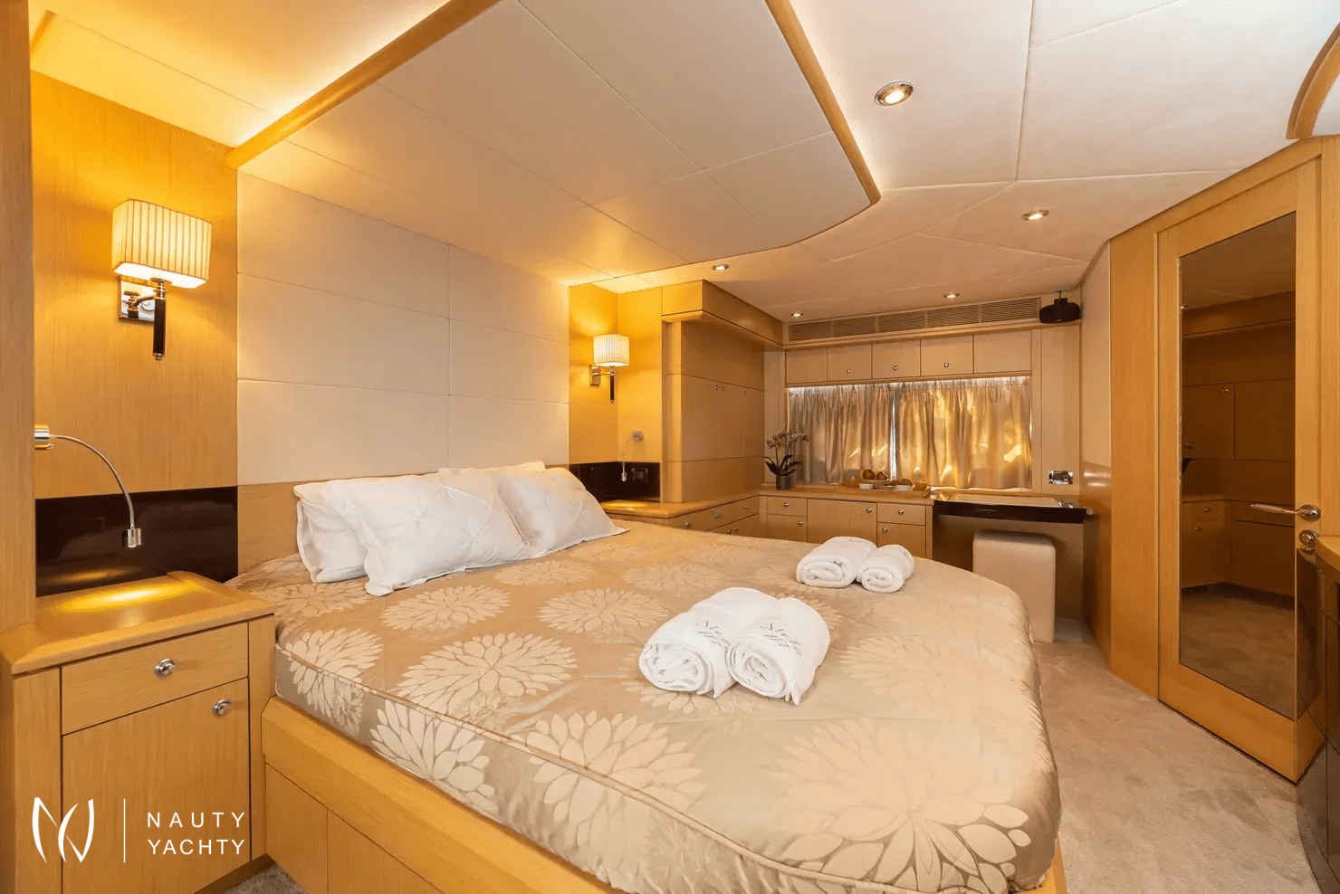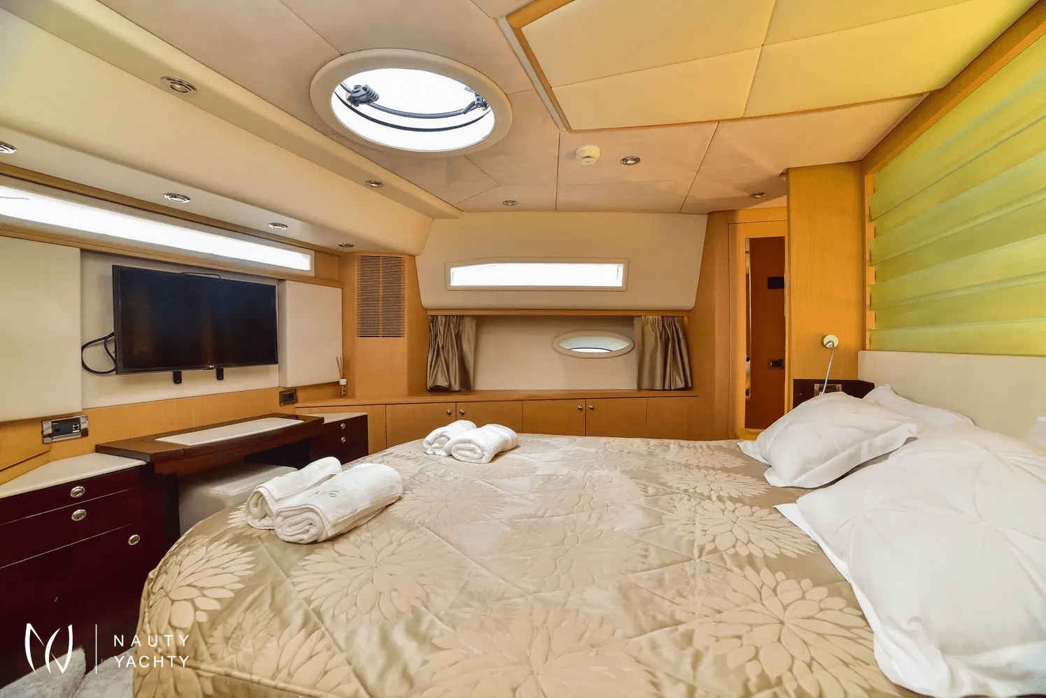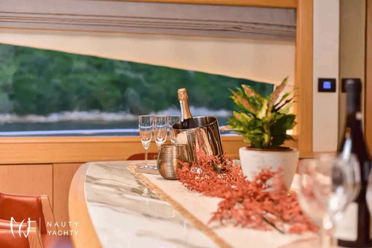 Her expansive flybridge is a true highlight, featuring a luxurious jacuzzi, ample sunpads, and shaded alfresco dining options. Inside, the elegant salon provides a cool retreat, while her accommodations are designed for pure relaxation. Stela 117 graciously accommodates up to 10 guests in four beautifully appointed staterooms: