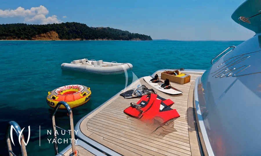 Discover the Aegean at an exhilarating pace aboard THEA MALTA, a performance motor yacht designed for unforgettable Greek island adventures. Departing from her homeport in Athens, this 27-meter Azimut combines sleek Italian design with remarkable power, boasting an impressive cruising speed of 35 knots. This incredible speed transforms your charter, allowing for effortless island-hopping between Mykonos, Santorini, and the hidden gems of the Cyclades, maximizing your time spent exploring sun-drenched shores and ancient harbours.