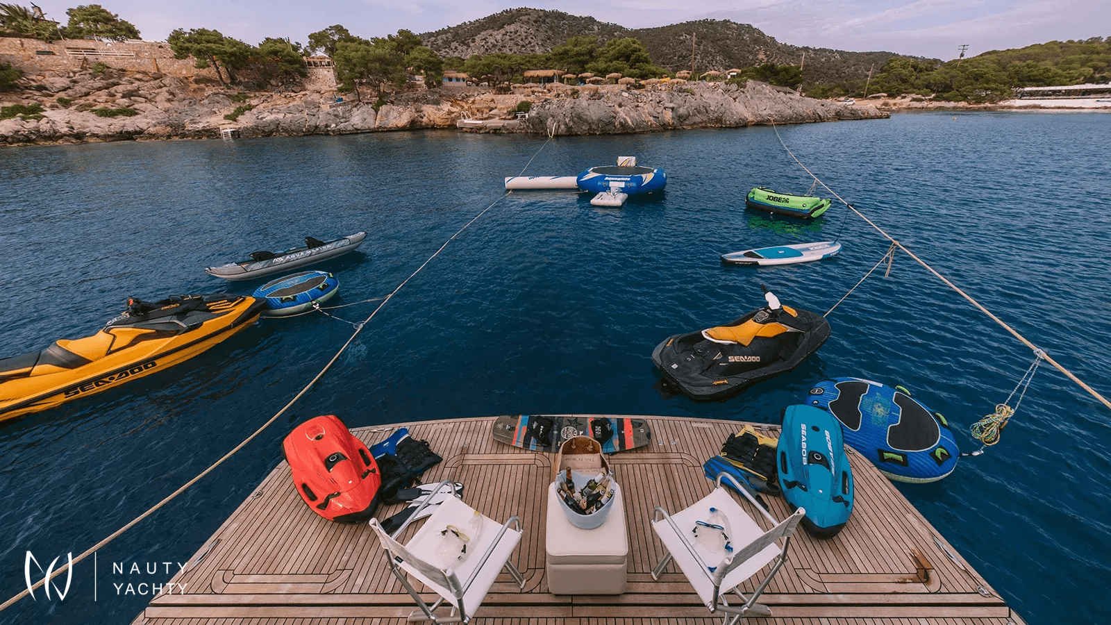 With a remarkable cruising speed of 25 knots, THIS IS MINE effortlessly glides between destinations, allowing you more time to indulge. Relax on the spacious sundeck, dive into the azure waters with an array of water toys, or simply savour the impeccable five-star service delivered by a professional crew of four. Every detail is tailored to ensure your journey is nothing short of extraordinary.