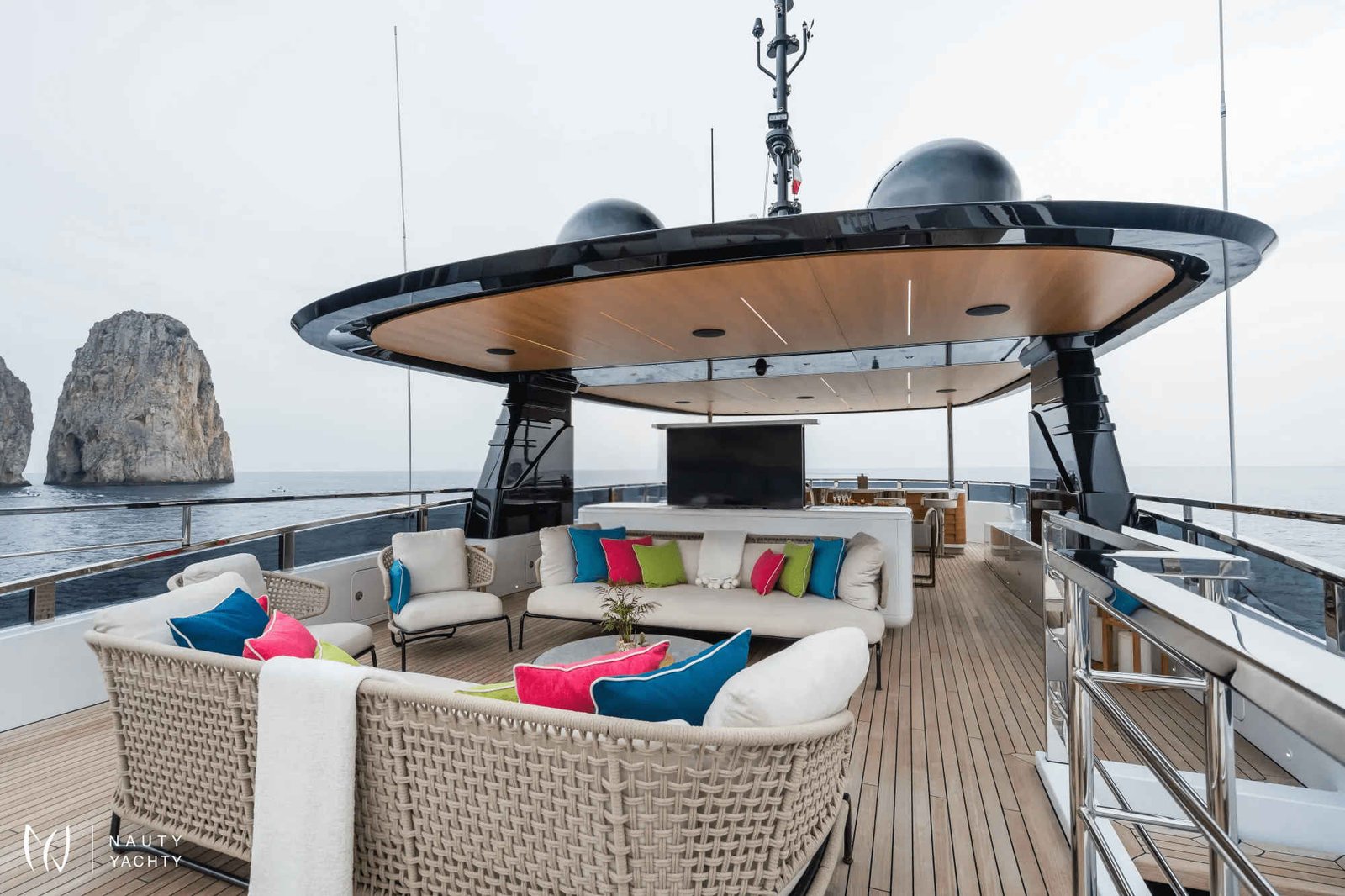 An expansive main deck master suite offers a private sanctuary, complete with its own sea-view balcony. Below, four exquisitely appointed double cabins provide versatile arrangements for up to 10 guests. The soul of your charter experience, however, lies in her exceptional outdoor spaces. Plunge into the foredeck infinity pool, or descend to the chic beach club, where the water's edge and a cocktail from the wet bar await. With a dedicated crew of eight, every detail of your journey on TOY is curated to perfection.