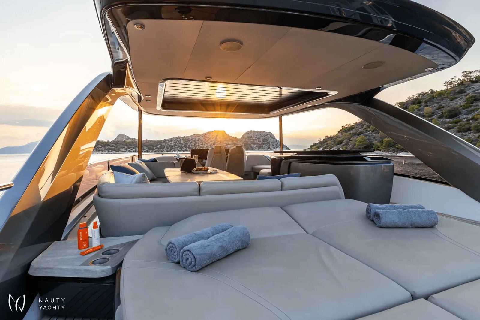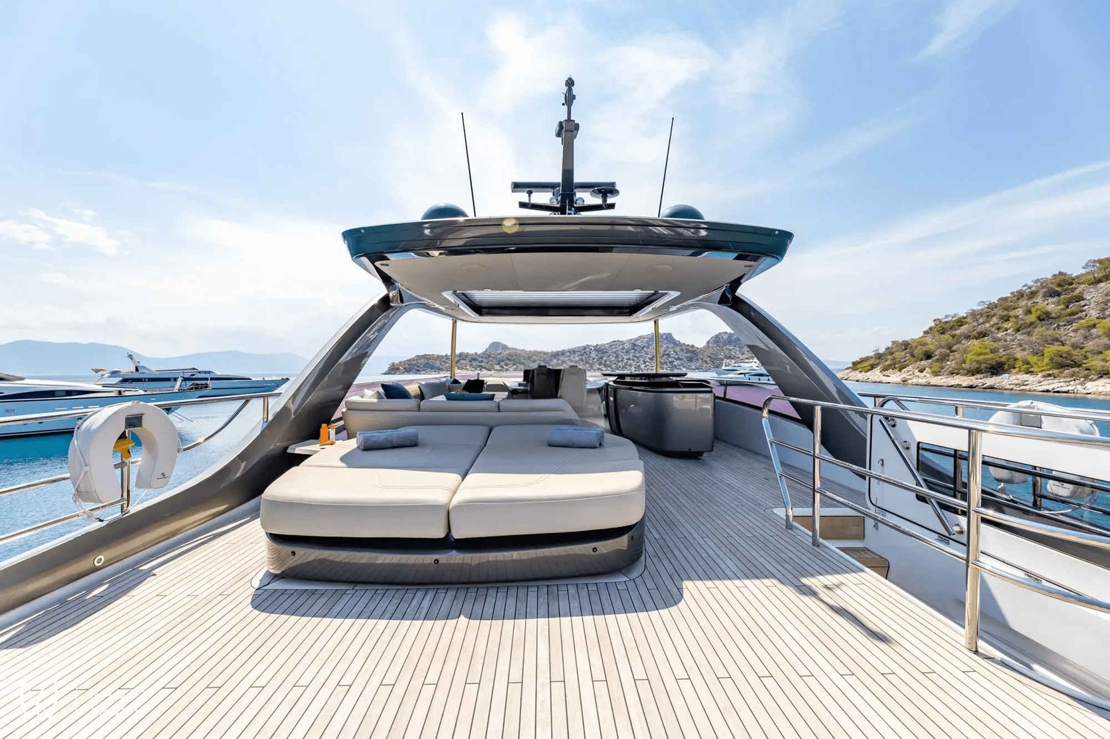 Embark on an unforgettable Aegean journey from Athens aboard VISTA, a magnificent 26-meter Princess yacht that redefines modern luxury. Designed for discerning guests, VISTA combines exhilarating performance with sophisticated comfort, allowing you to glide between the Greek islands in absolute style. Her expansive flybridge is the heart of outdoor living, offering panoramic views, an elegant al fresco dining setting, a fully-equipped wet bar, and vast sunpads for soaking up the Mediterranean sun.