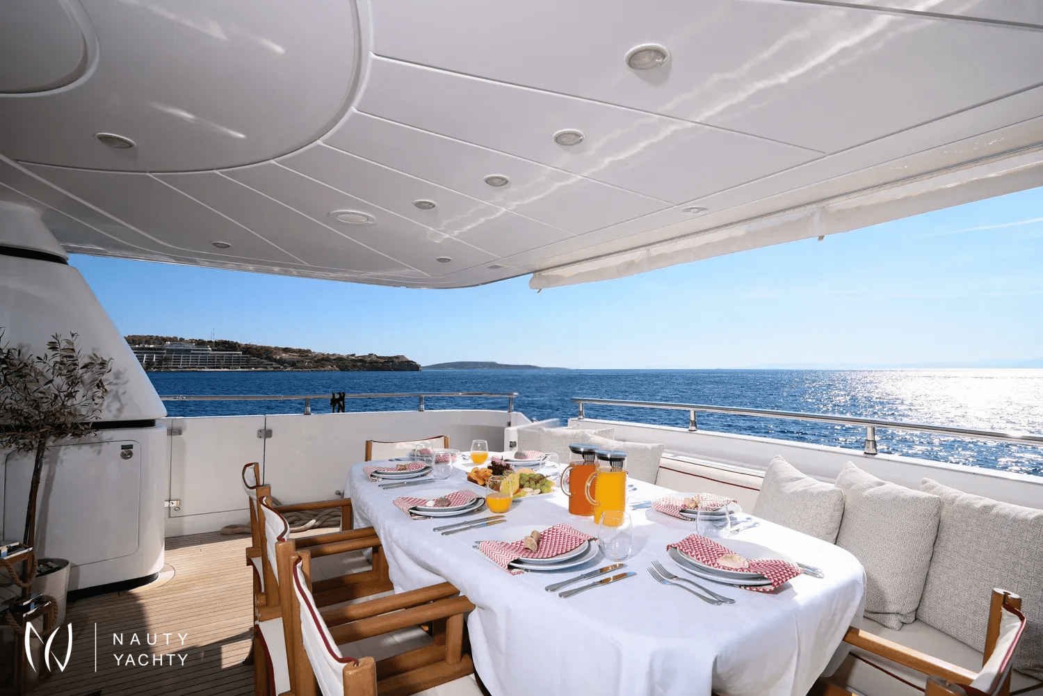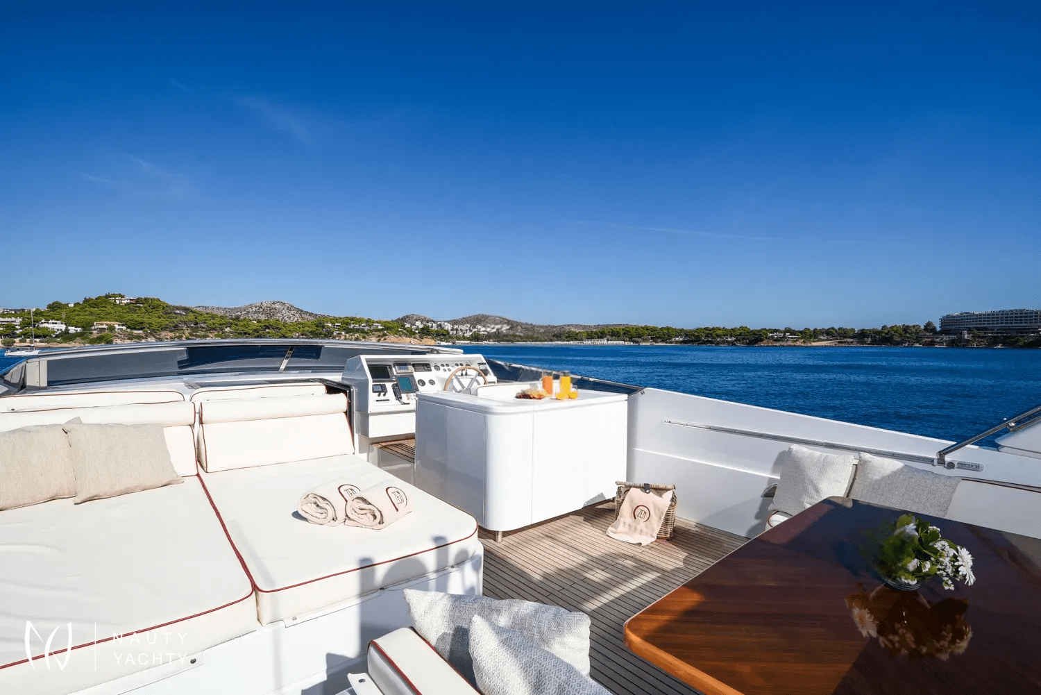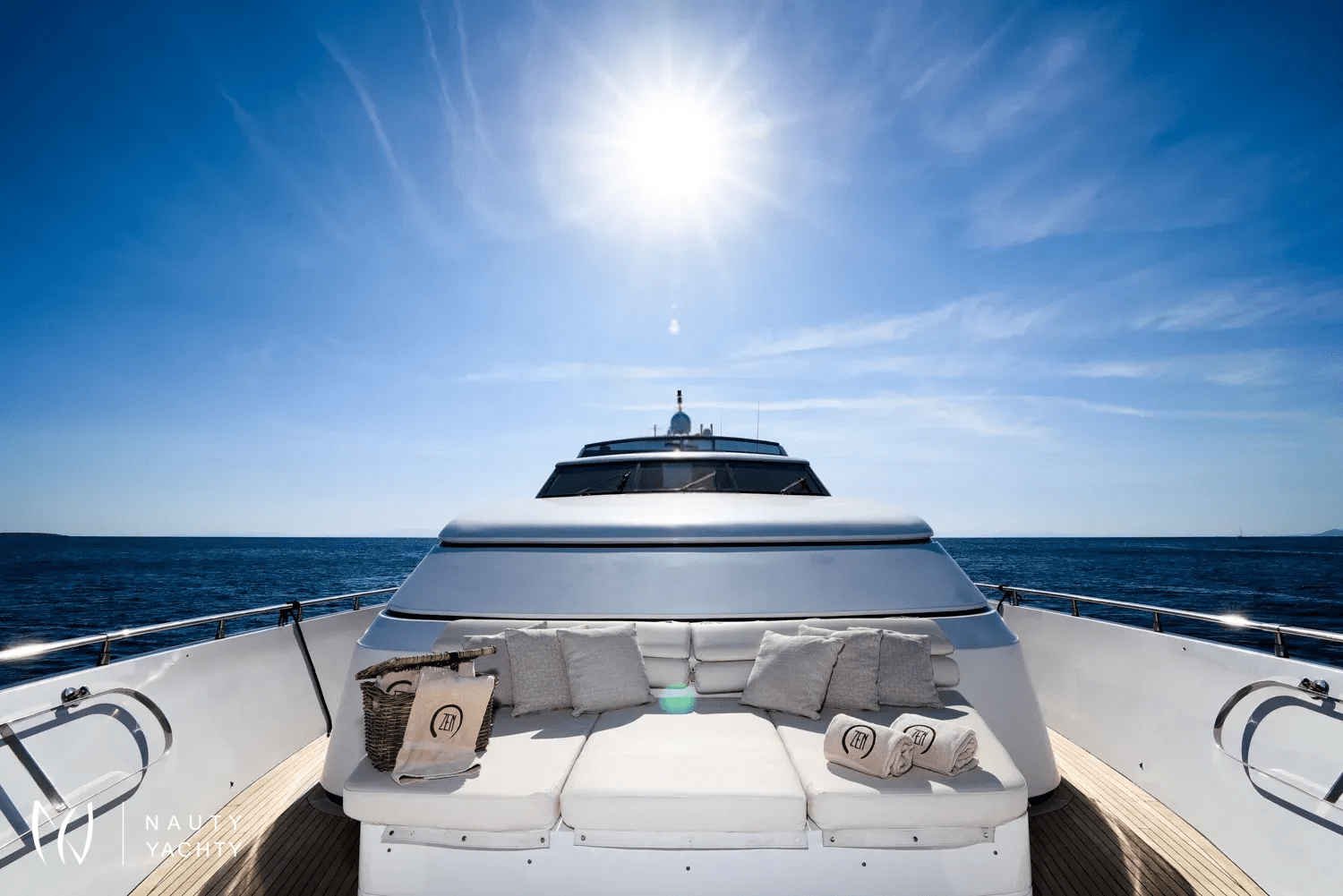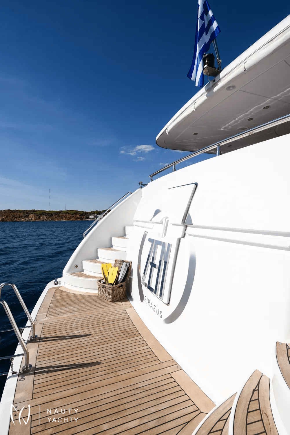 Step aboard and let the dedicated crew of five cater to your every desire. The yacht’s sophisticated interiors provide a serene atmosphere, while spacious decks are perfect for alfresco dining against a backdrop of azure waters or simply basking in the Mediterranean sun. With an impressive cruising speed of 20 knots, ZEN ensures you can effortlessly island-hop from Mykonos to Santorini in absolute comfort and style.